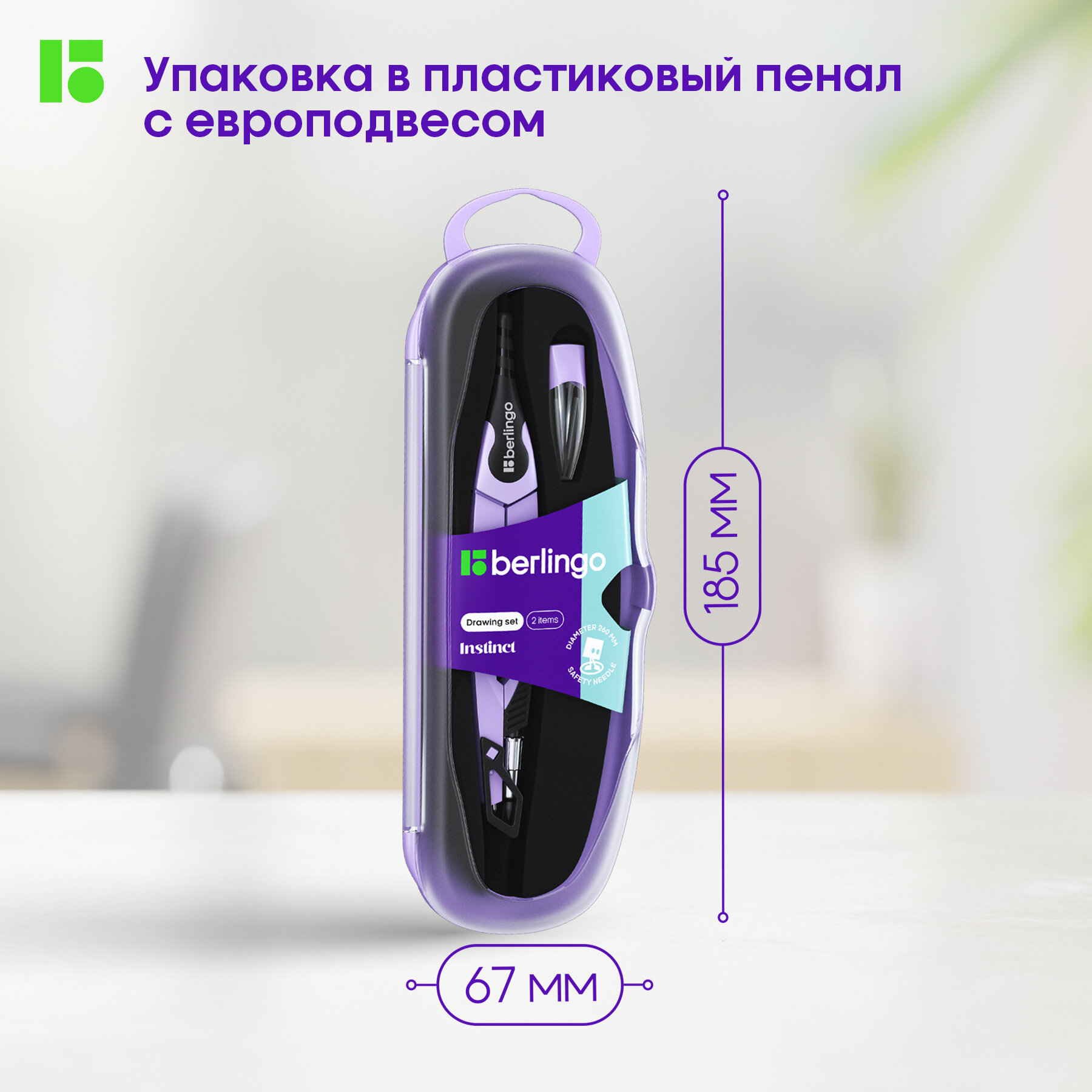 Купить Готовальня Berlingo "Instinct", 2 предмета, циркуль 135мм, лаванда, пластиковый футляр
