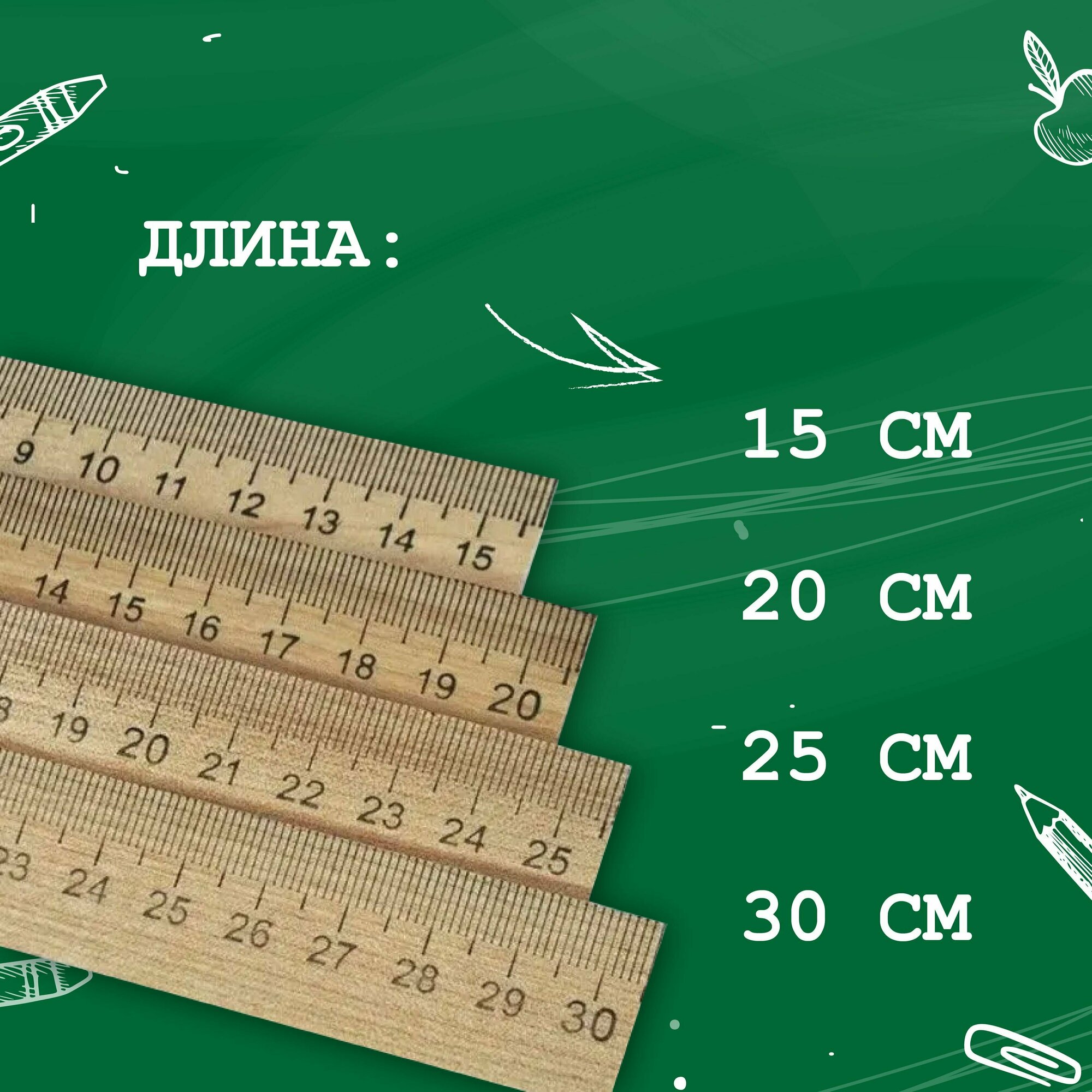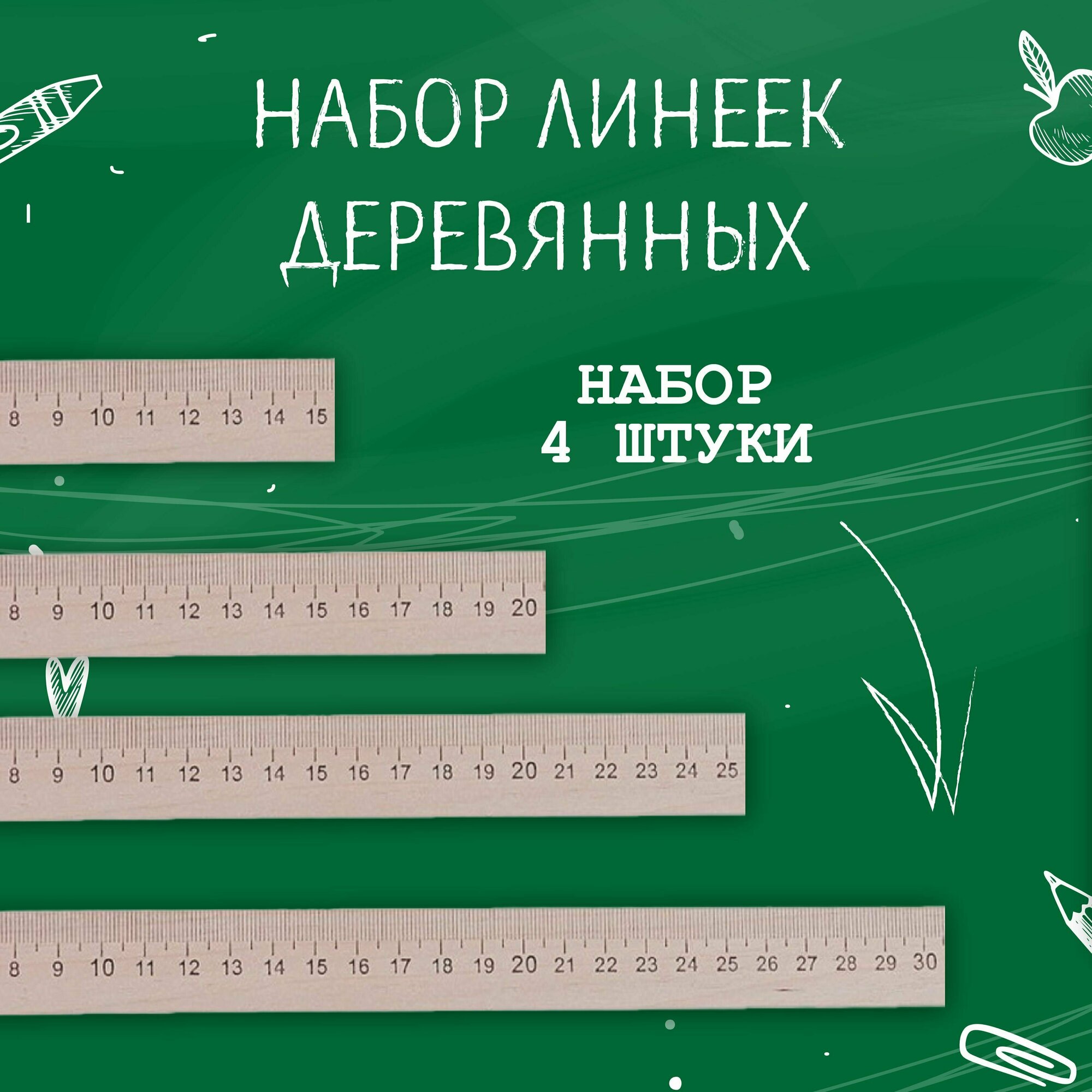 Набор 4 линейки деревянные 15+20+25+30см 5076714