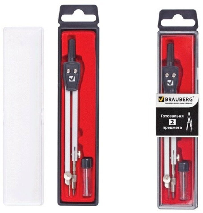 Готовальня 2 предмета: циркуль 135 мм для черчения+грифель Brauberg "Architect" школьный универсальный, 210321