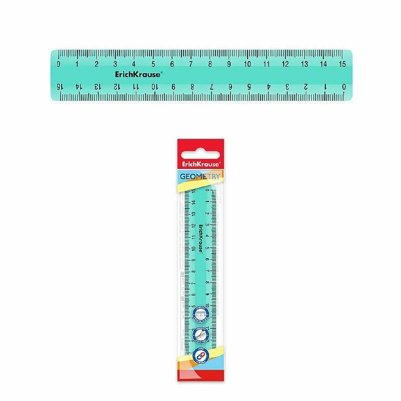 Линейка 15 см ErichKrause Pastel Mint, в флоупаке, мятный интересное: