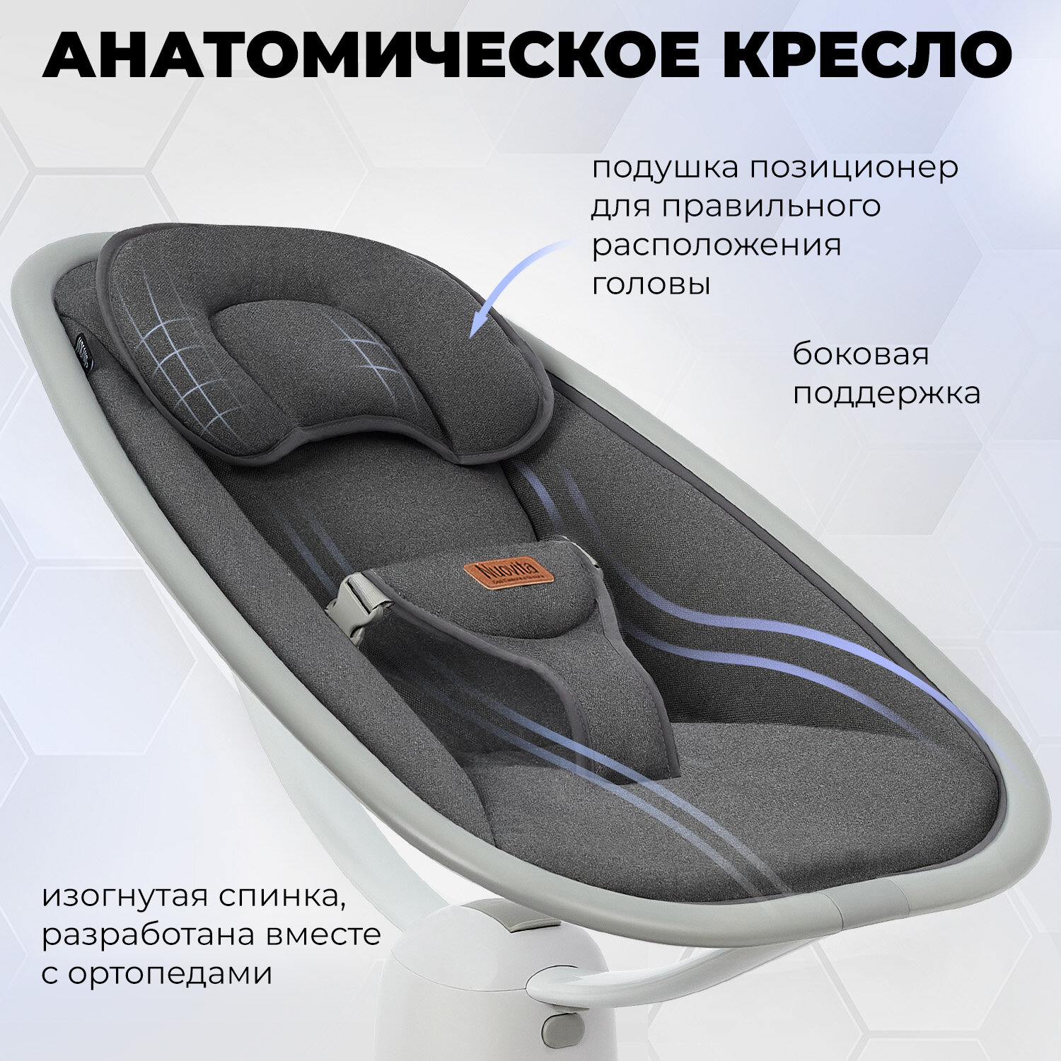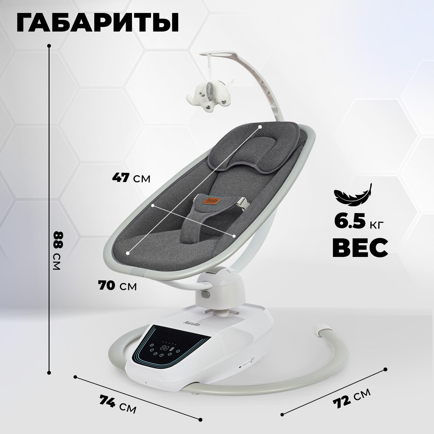 | Комплектация | электрокачель, подушка, адаптер питания, подвесная игрушка, пульт ДУ |