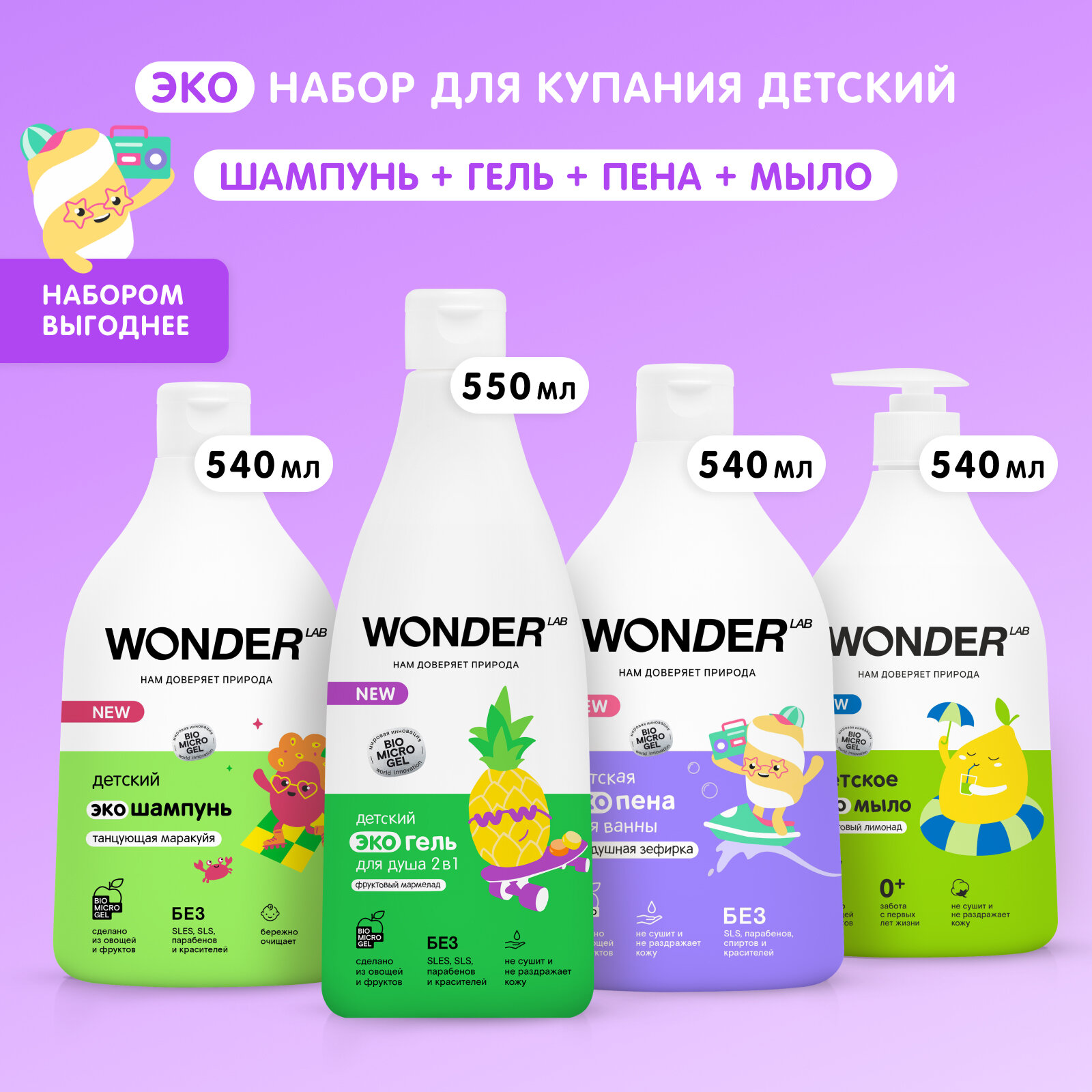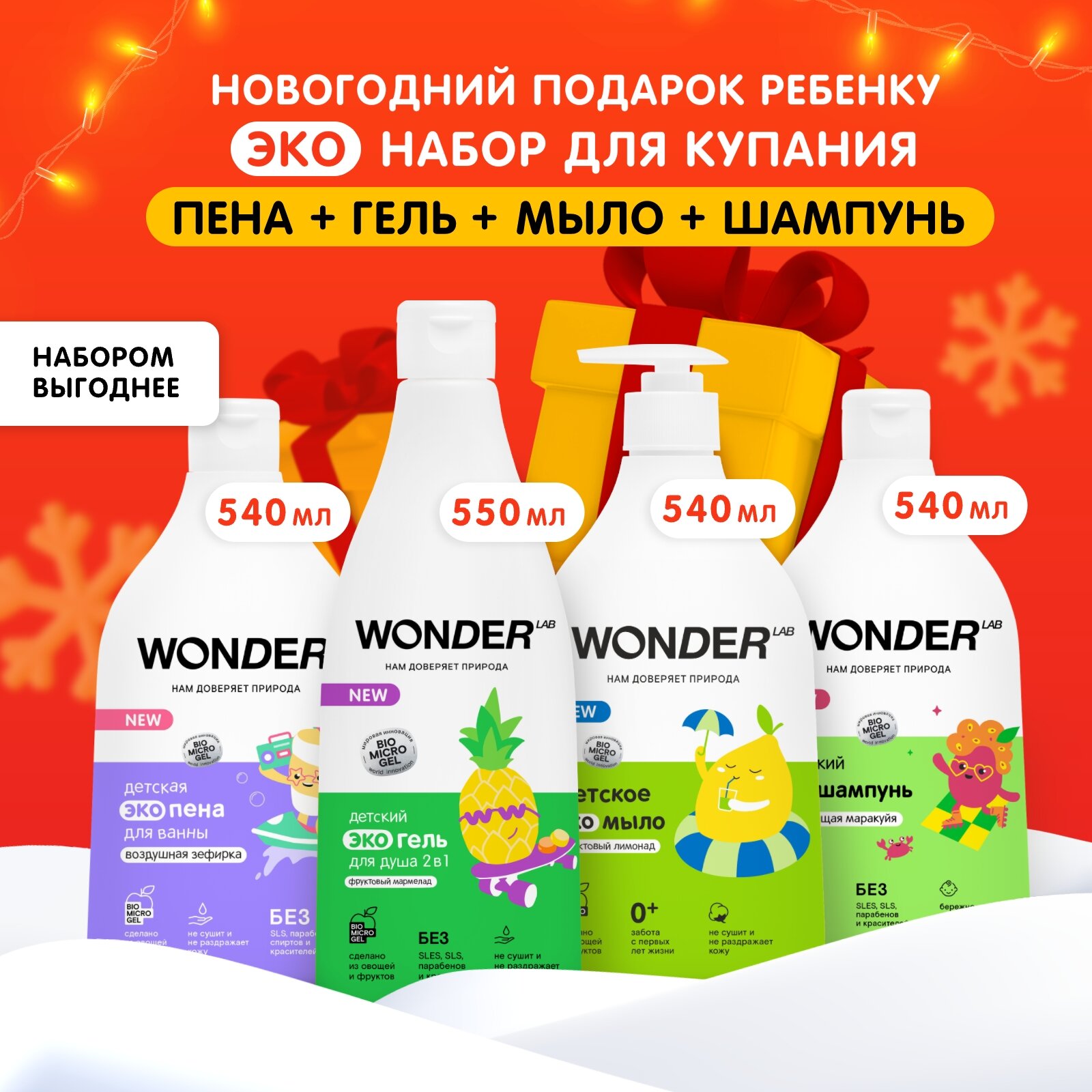 WONDER LAB Набор Детские эко средства для малышей: эко гель для купания, эко мыло нейтральное, эко пена для подмывания, эко гель для игрушек