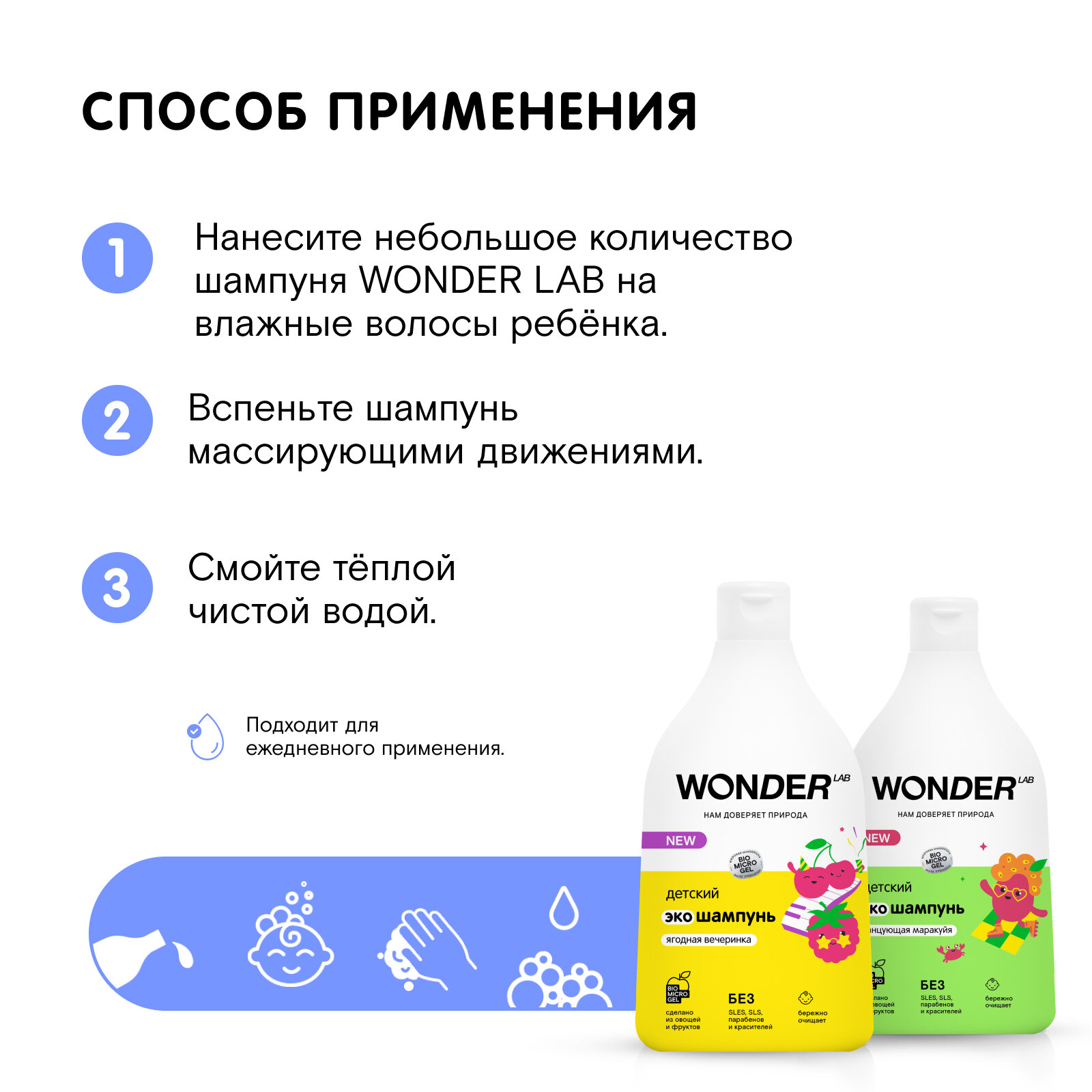 Детский эко шампунь 0+ WONDER LAB "Танцующая маракуйя", 540 мл, экологичный шампунь для малышей, очищение кожи головы и волос без раздражения