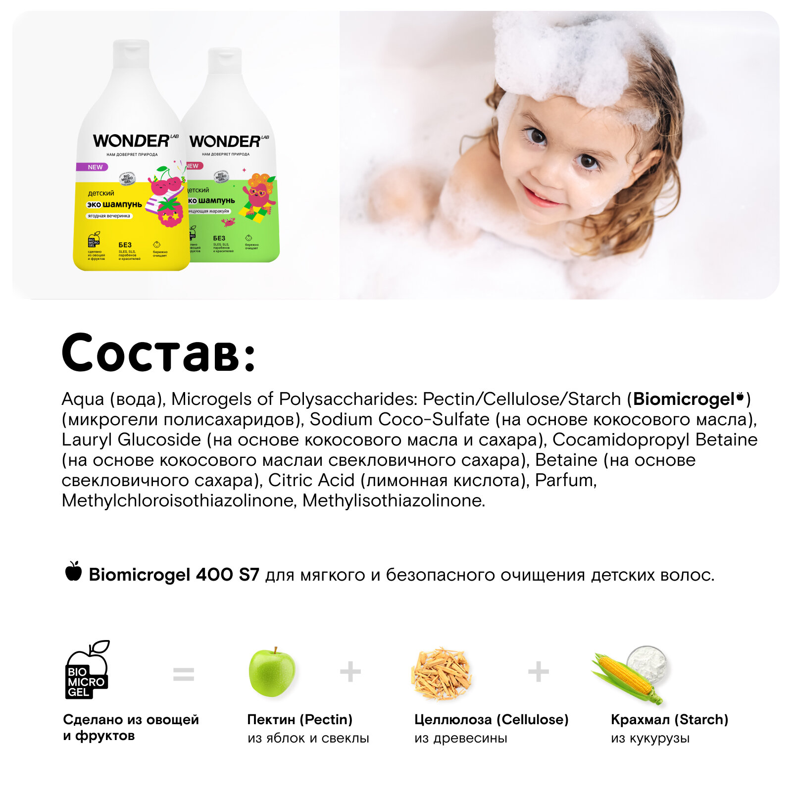Набор детский эко шампунь "Ягодная вечеринка" WONDER LAB, 2 х 540 мл