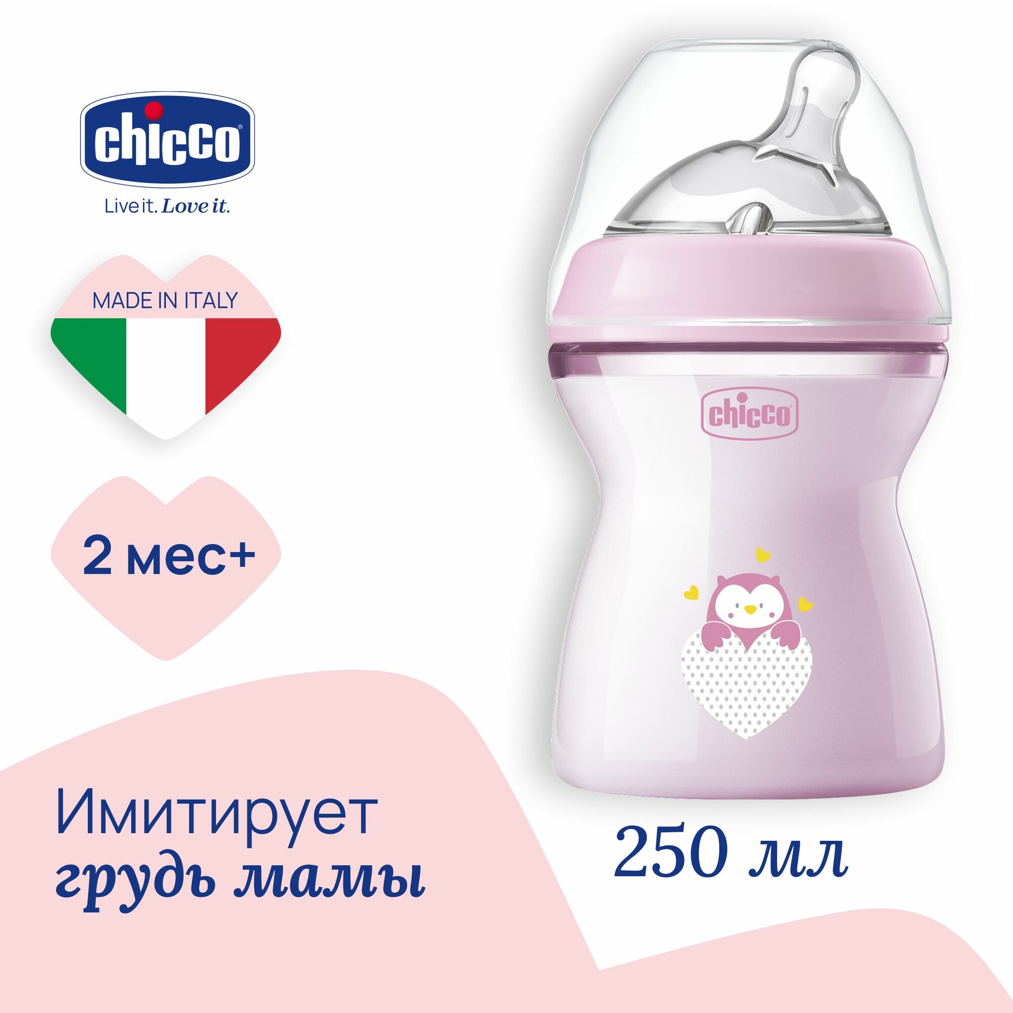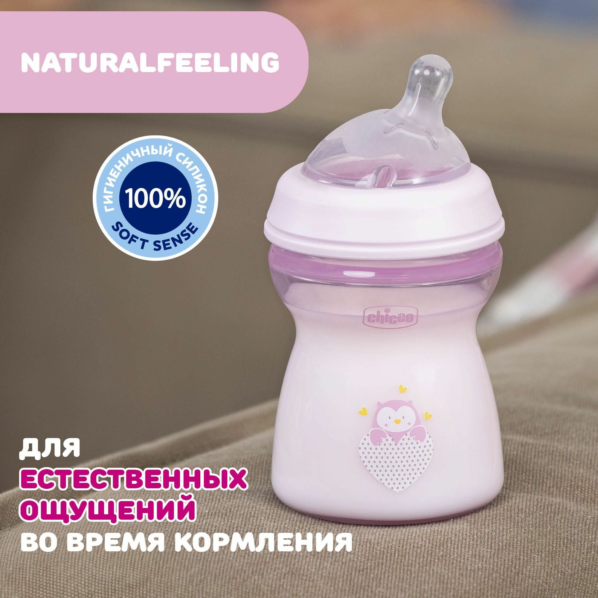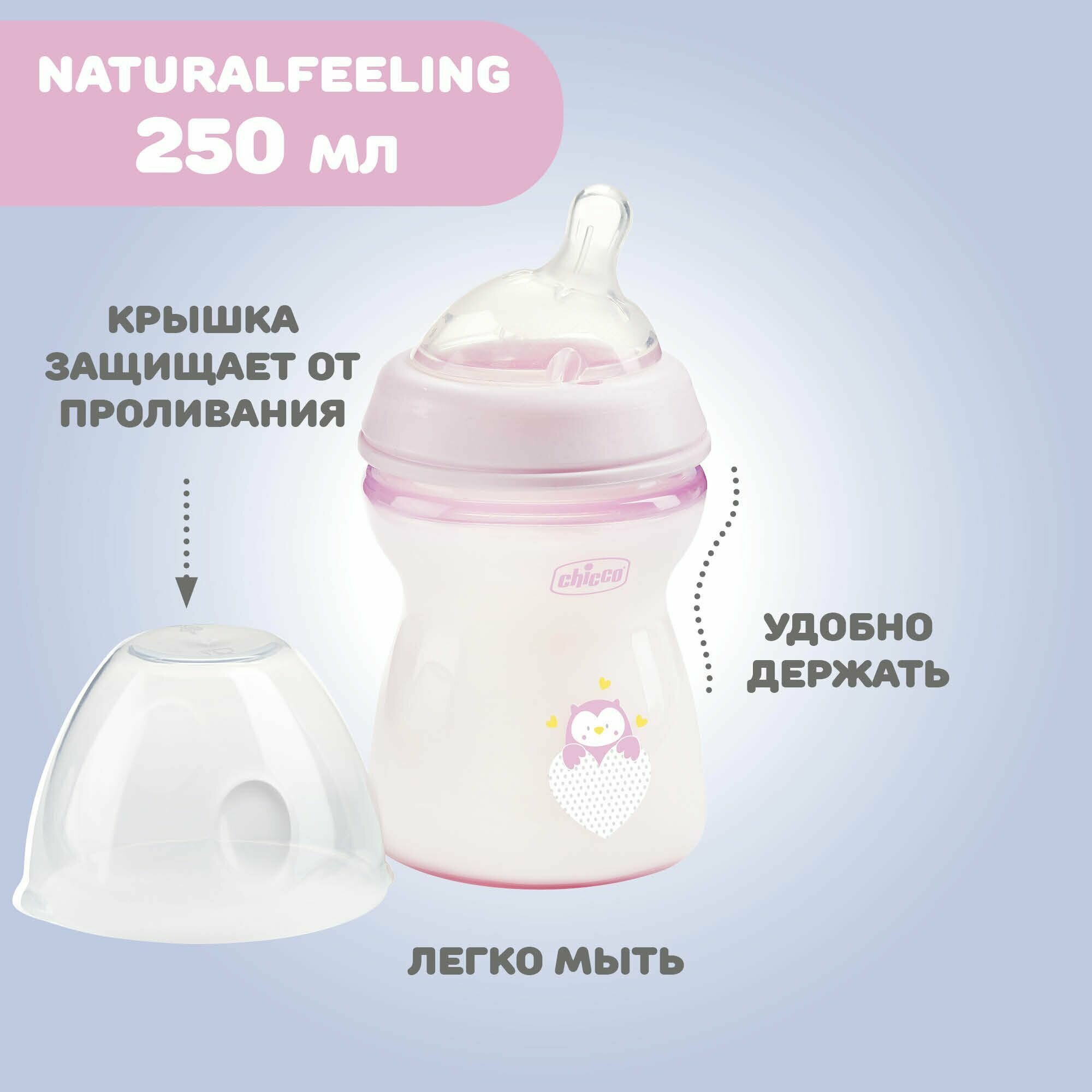 Бутылочка Chicco Natural Feeling 250 мл, 2м+ розовая для ребенка интересное: