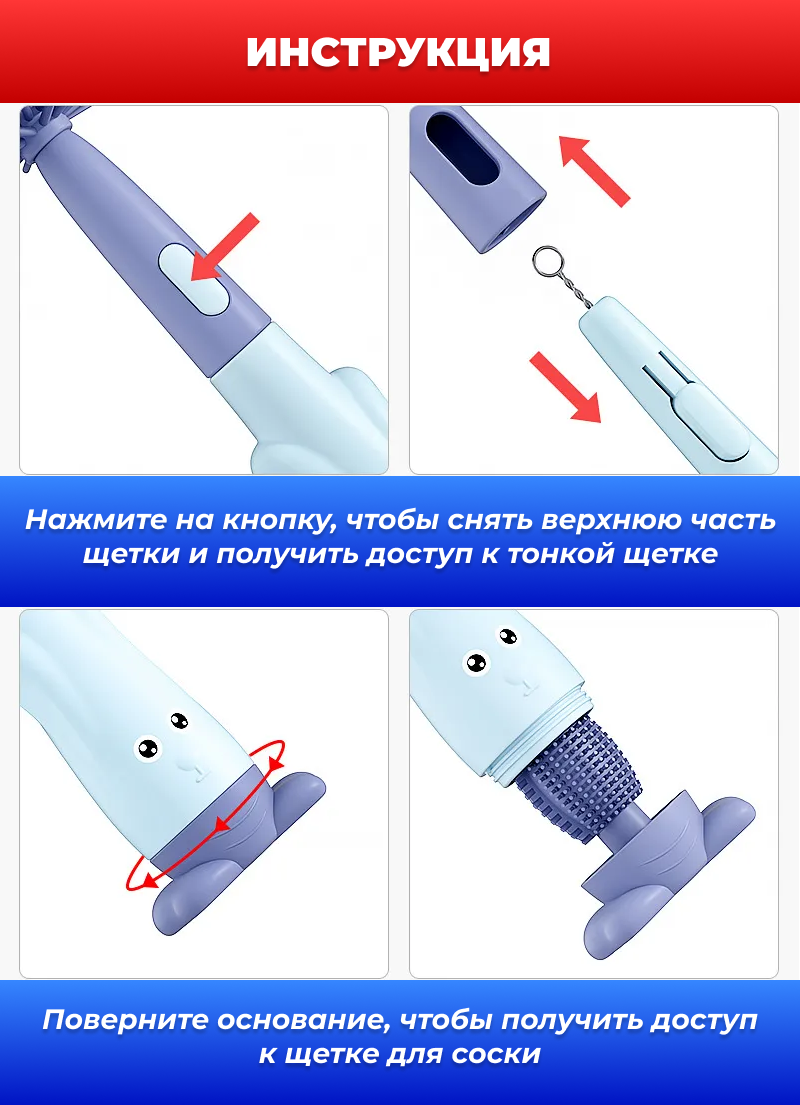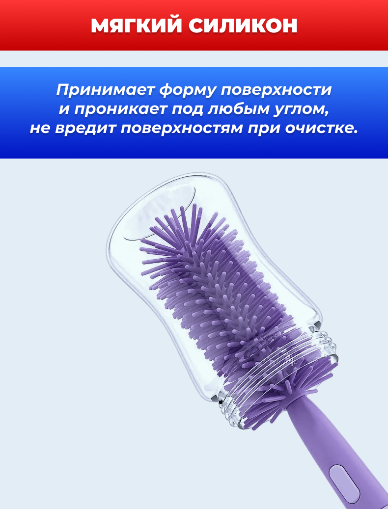Силиконовая щетка для бутылочек 3 в 1, ершик для детской посуды, фиолетовый интересное: