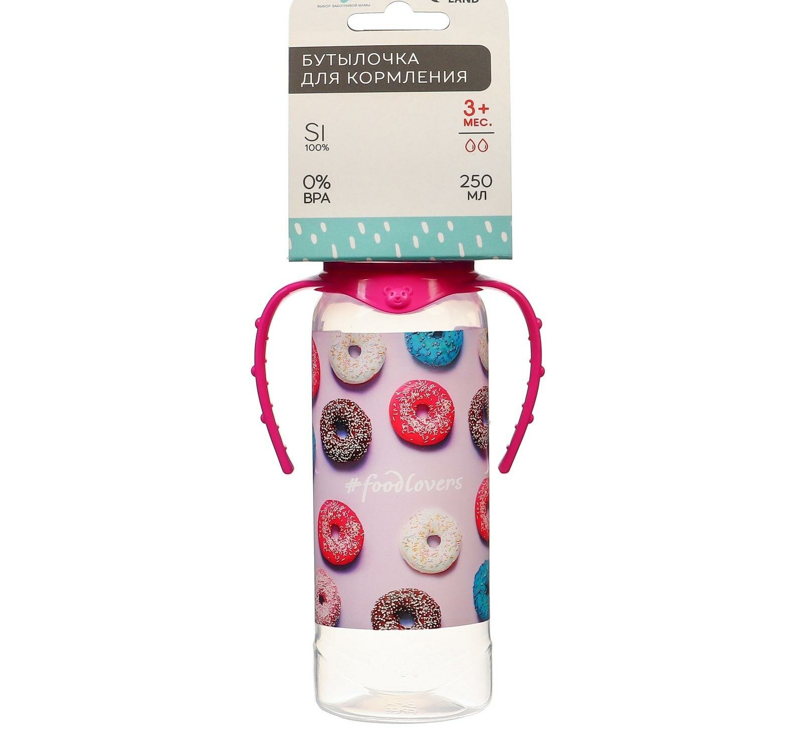 Бутылочка для кормления "Пончики" 250 мл цилиндр, с ручками интересное: