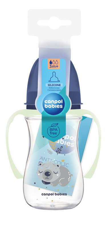Купить Детская антиколиковая бутылочка Canpol babies Sleepy Koala для кормления малыша, бутылка для воды и смеси, от коликов, от 3 мес, 240 мл, голубой