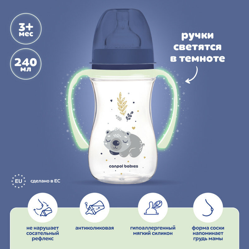 Детская антиколиковая бутылочка Canpol babies Sleepy Koala для кормления малыша, бутылка для воды и смеси, от коликов, от 3 мес, 240 мл, голубой интересное: