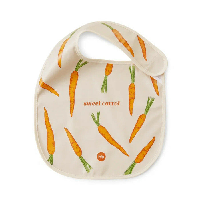 16009, Нагрудник для кормления Happy Baby, слюнявчик, водонепроницаемый, на липучке, от 6 мес, оранжевый с морковками