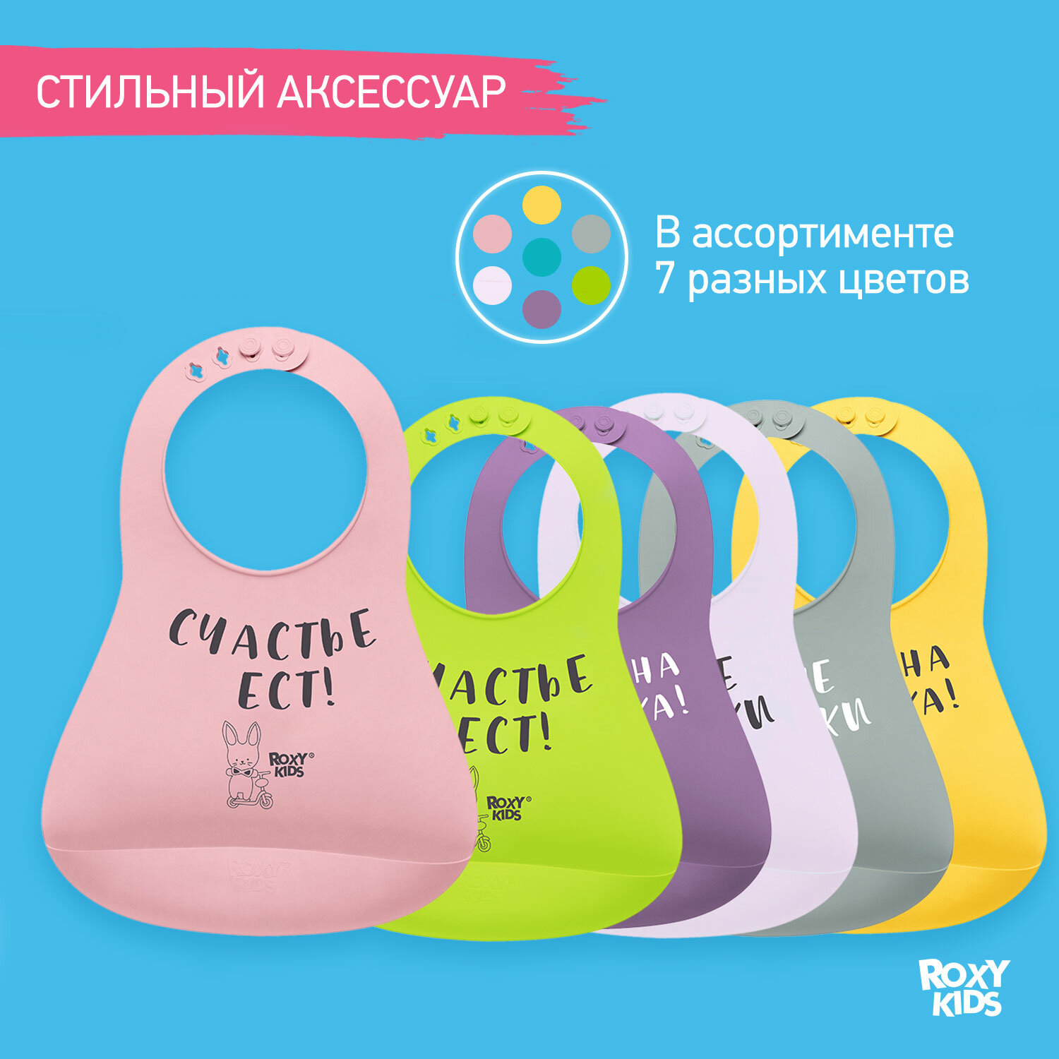 Нагрудник для кормления ROXY-KIDS, слюнявчик пластиковый с кармашком, сиреневый
