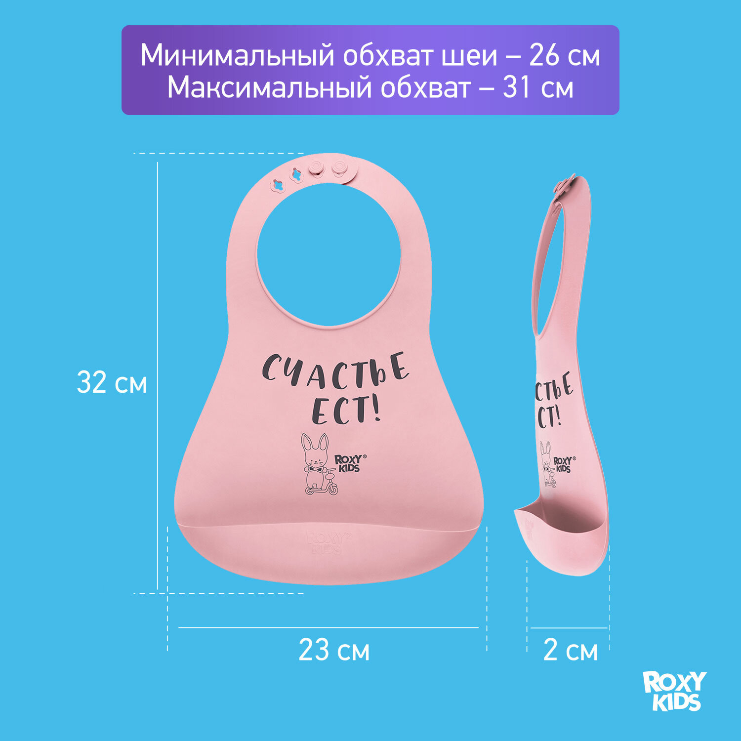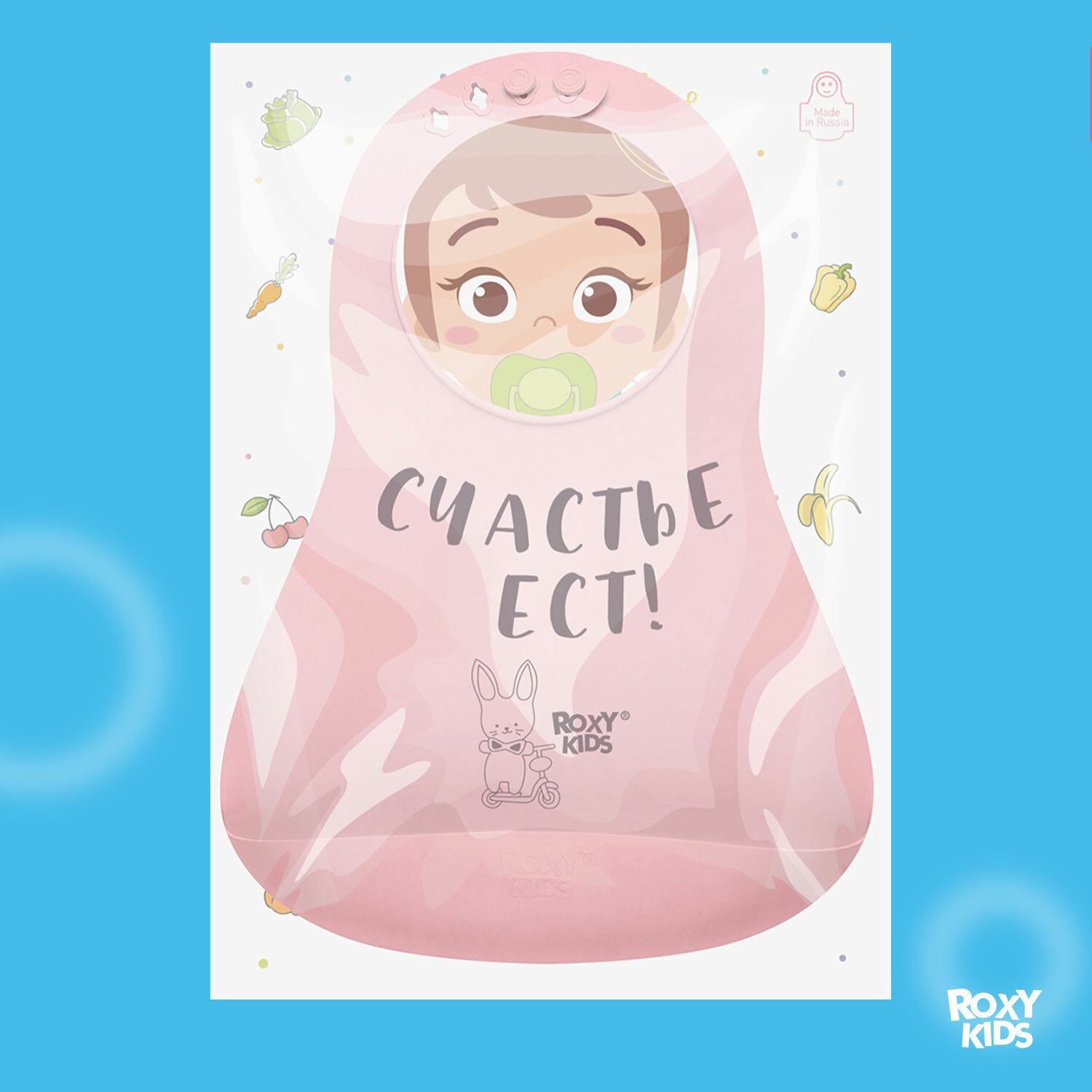 Купить Нагрудник для кормления ROXY-KIDS, слюнявчик пластиковый с кармашком, розовый