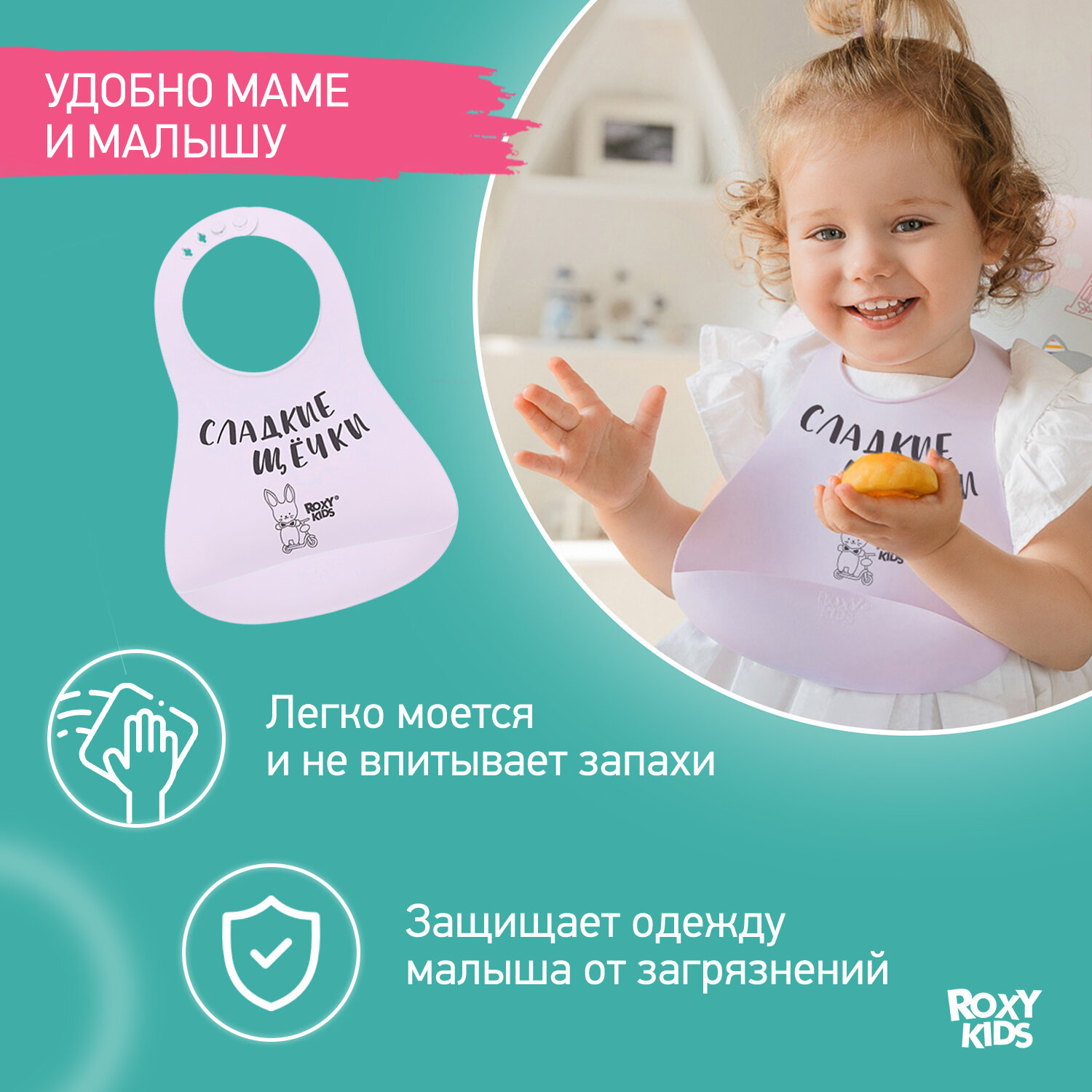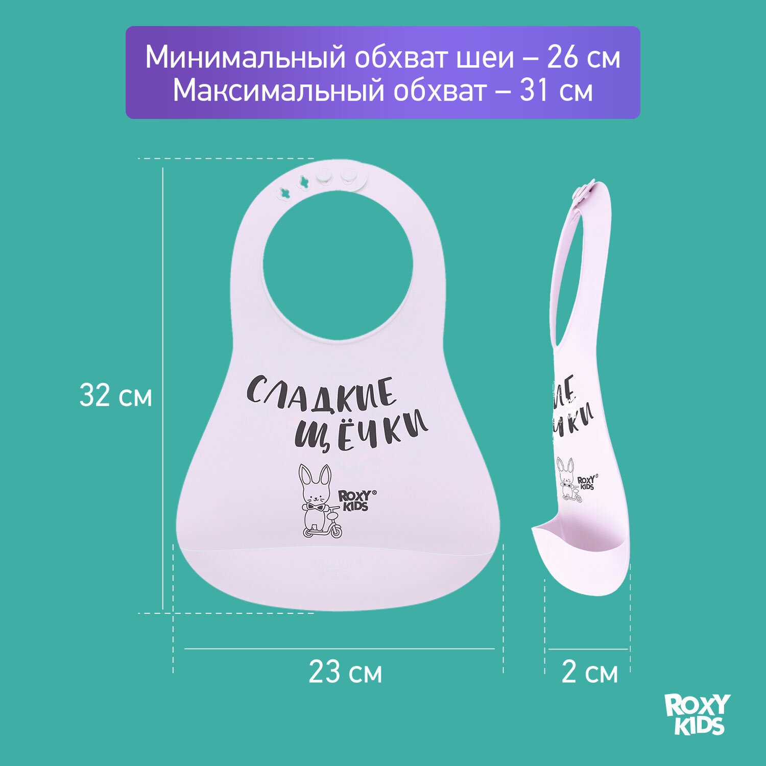 Купить Нагрудник для кормления ROXY-KIDS, слюнявчик пластиковый с кармашком, сиреневый