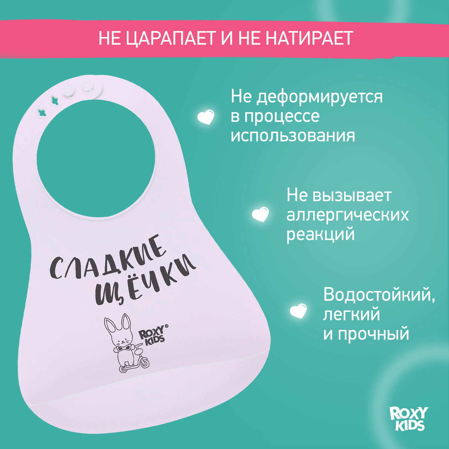 Нагрудник для кормления ROXY-KIDS, слюнявчик пластиковый с кармашком, розовый