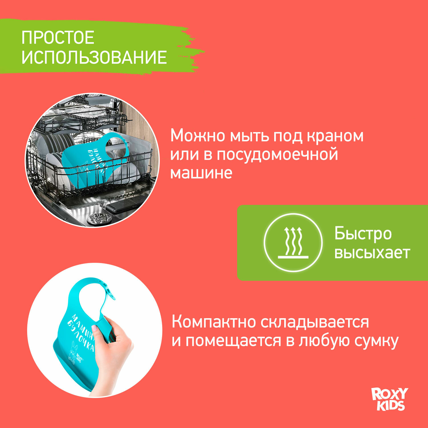 СохранитьНагрудник для кормления ROXY-KIDS, слюнявчик пластиковый с кармашком, мятный интересное: