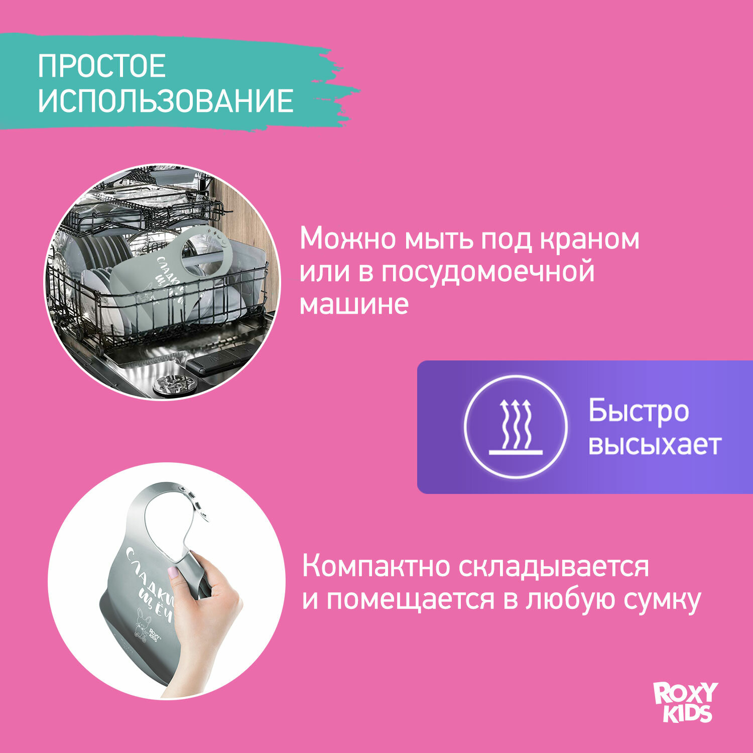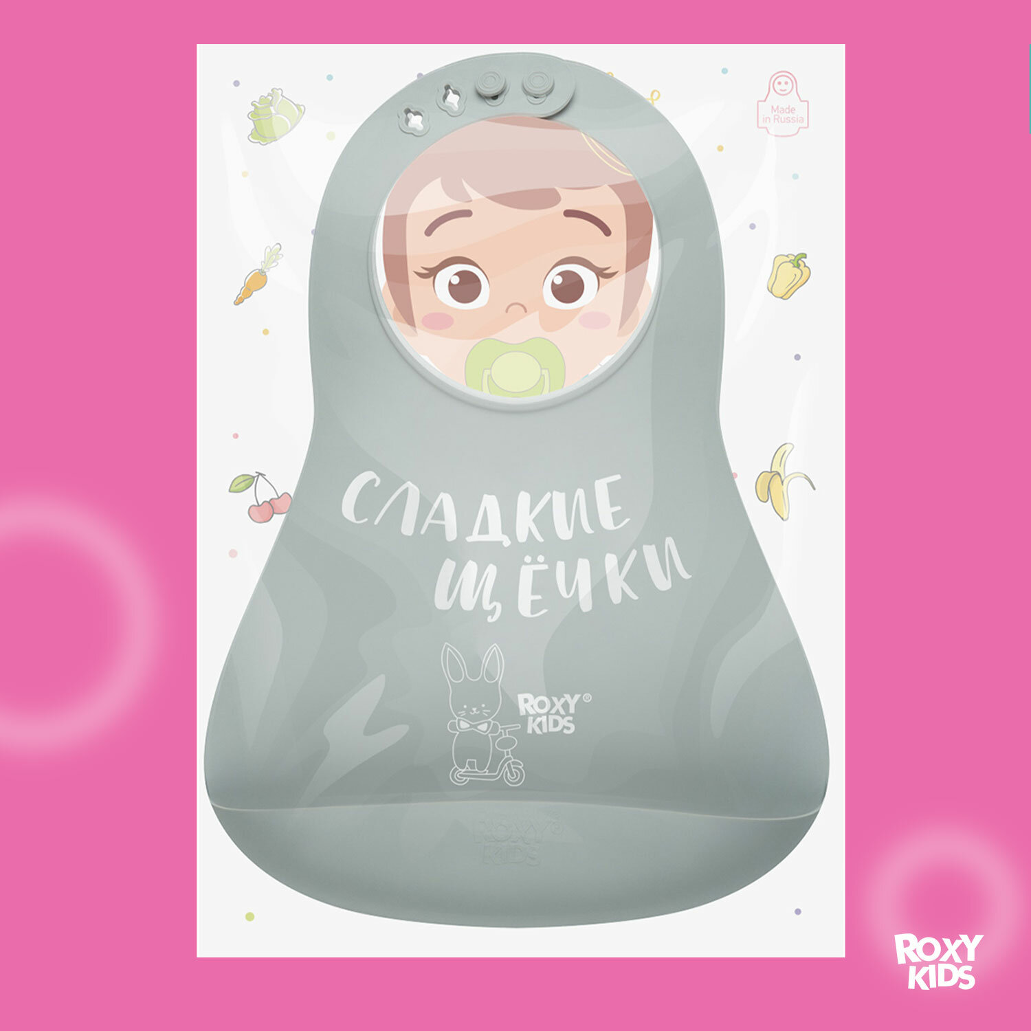 Купить Нагрудник для кормления ROXY-KIDS, слюнявчик пластиковый с кармашком, графит