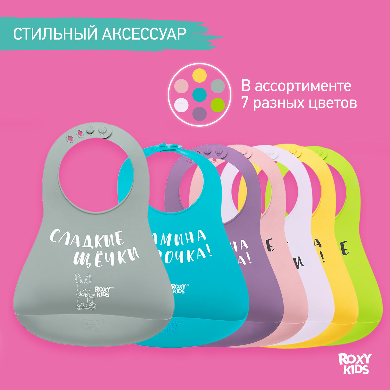 Нагрудник для кормления ROXY-KIDS, слюнявчик пластиковый с кармашком, сиреневый