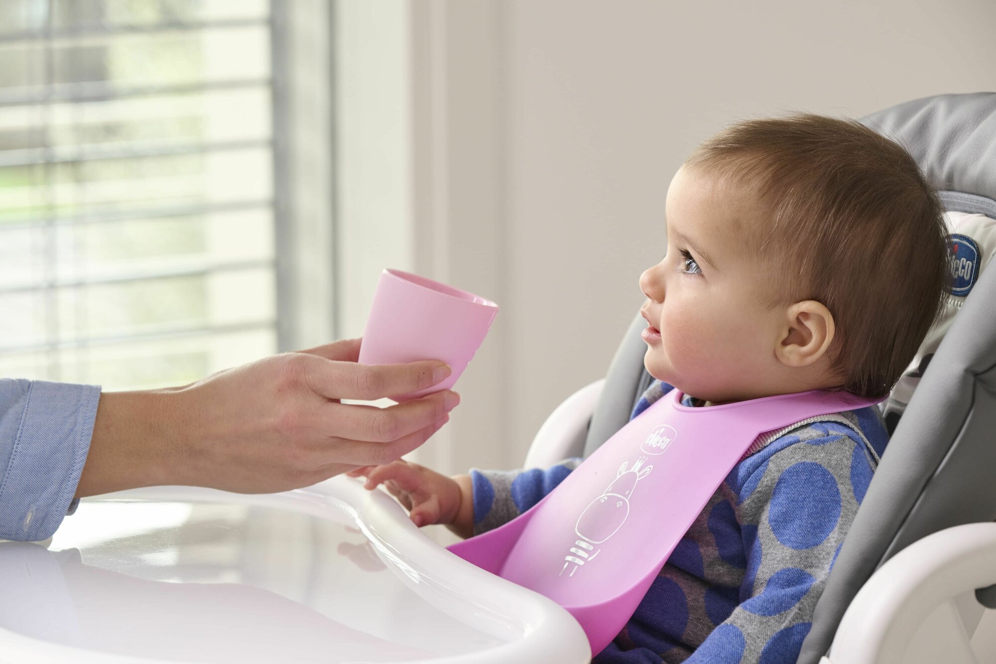 Купить Нагрудник детский, силиконовый для кормления Chicco EASY ROLL BIB PINK