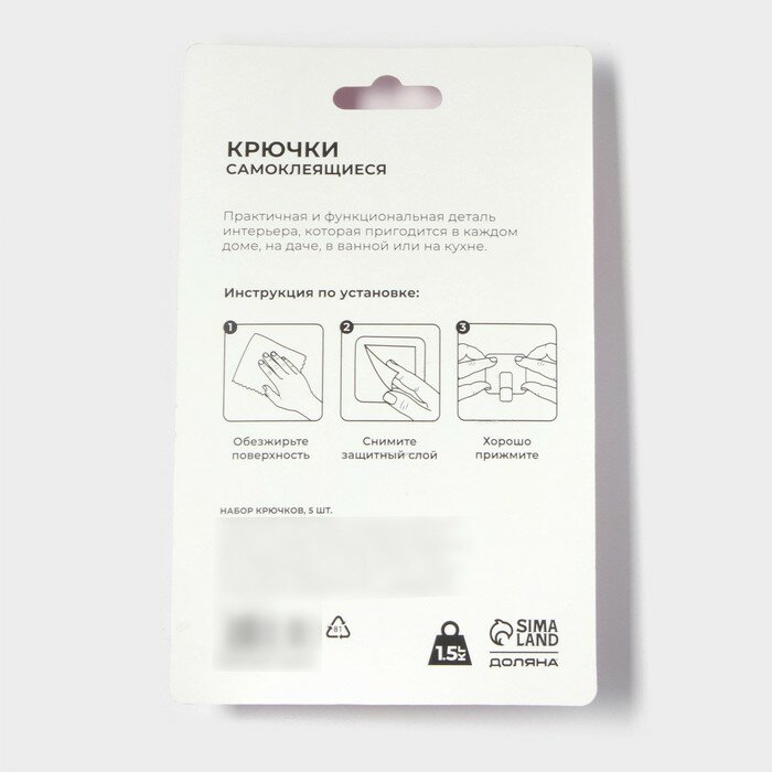 Доляна Крючок на липучке Доляна «Клевер», 5 шт, цвет белый интересное: