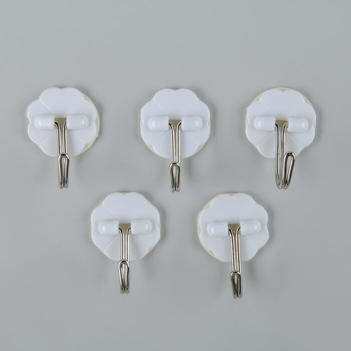 Купить Доляна Крючок на липучке Доляна «Клевер», 5 шт, цвет белый