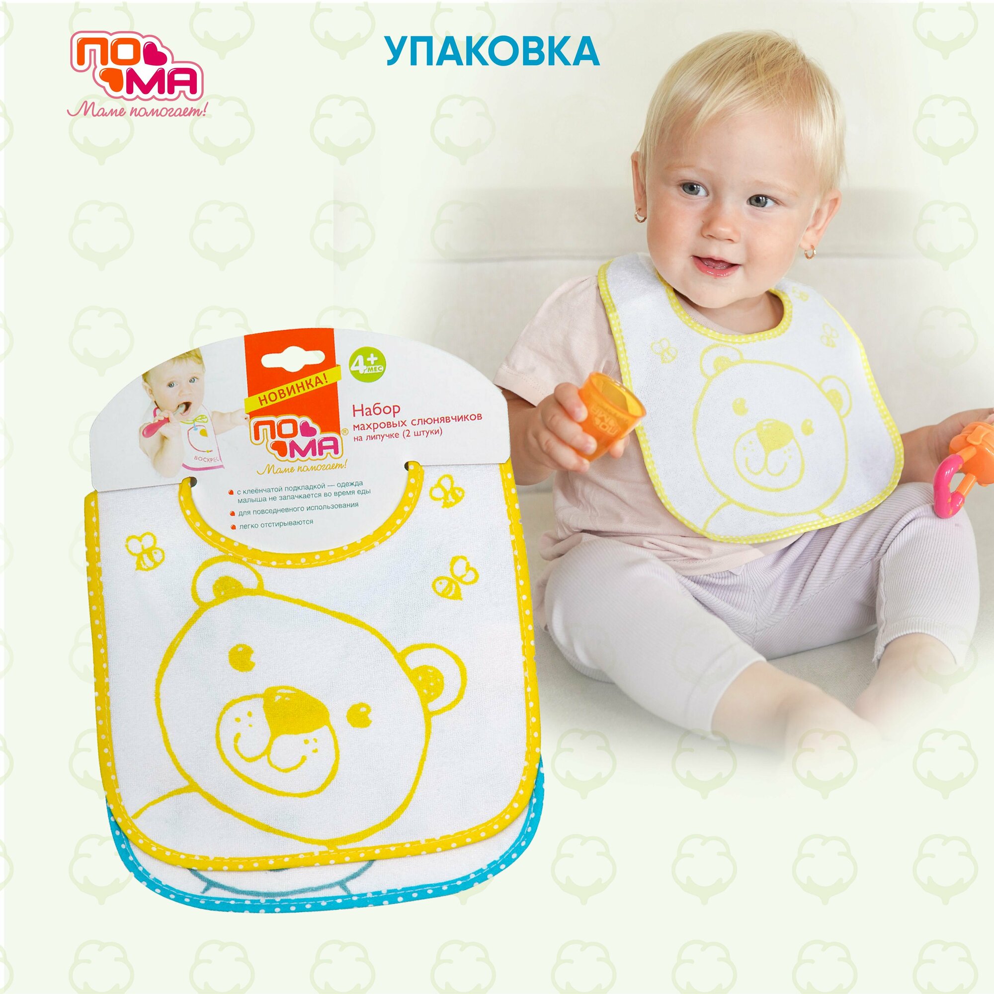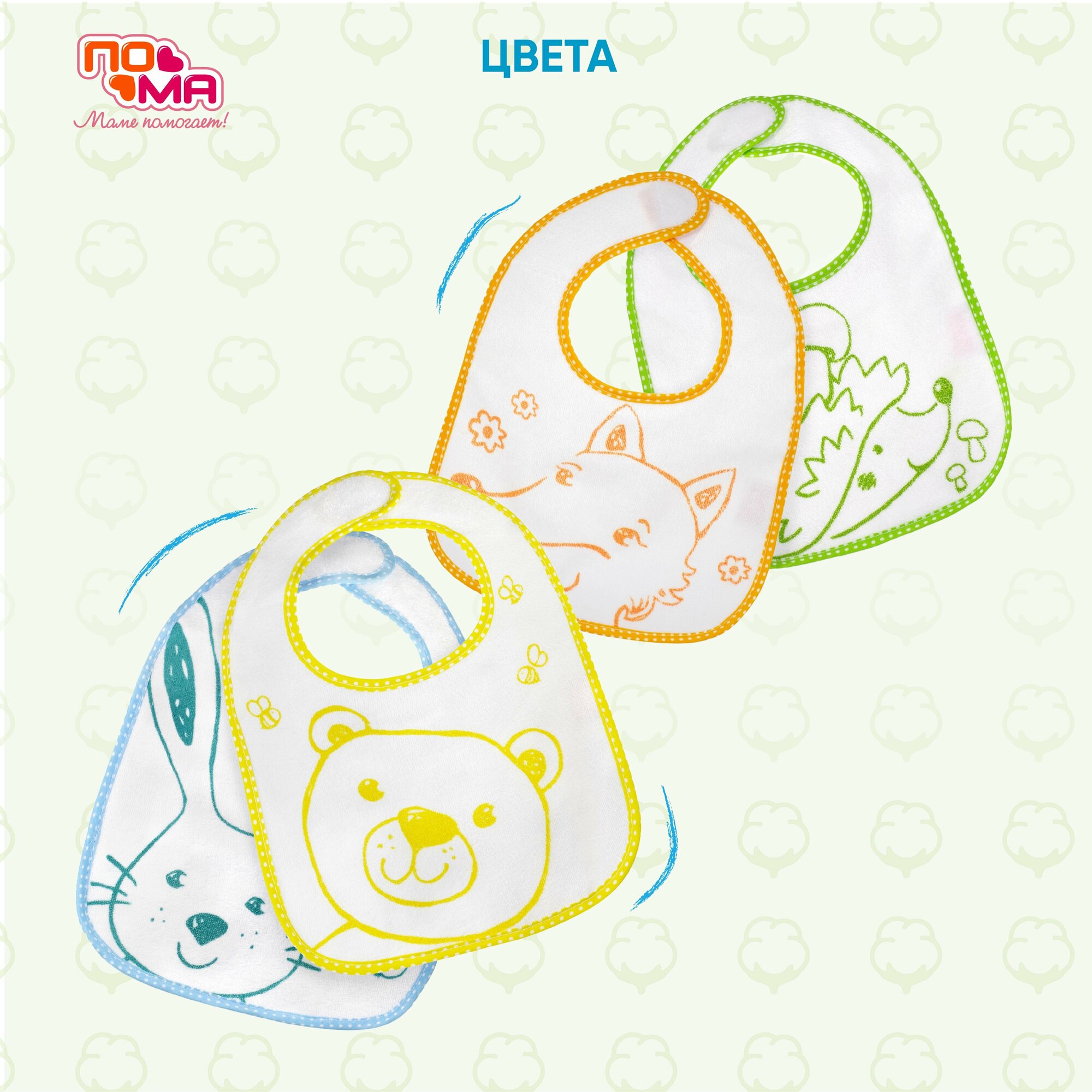 Набор слюнявчиков махровых для кормления новорожденных 1 шт 4 мес+ мишка интересное: