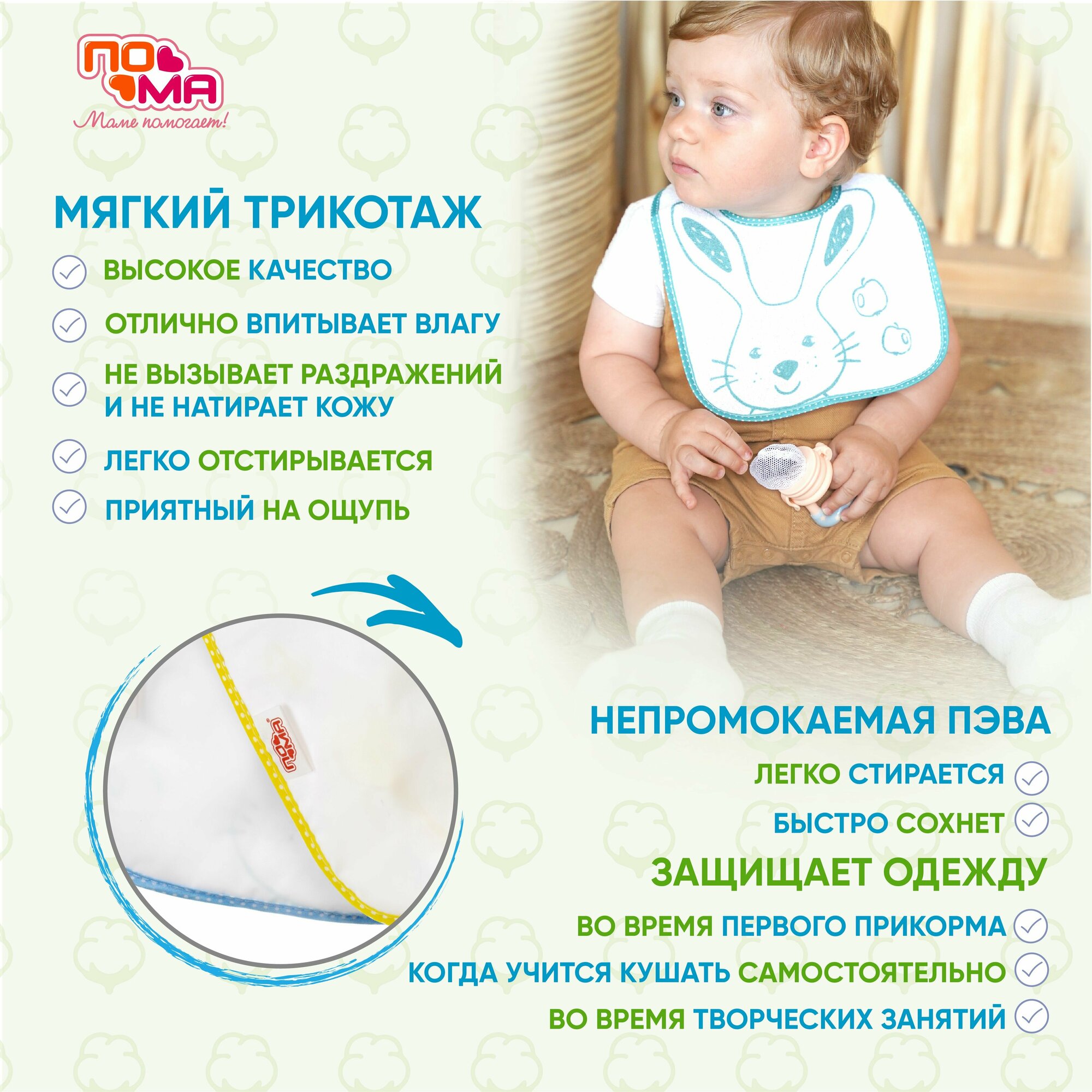 Набор слюнявчиков махровых для кормления новорожденных 1 шт 4 мес+