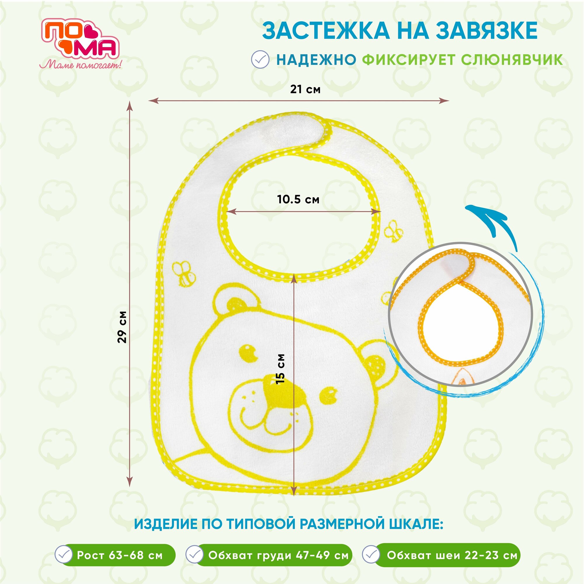 Купить Набор слюнявчиков махровых для кормления новорожденных 1 шт 4 мес+ мишка