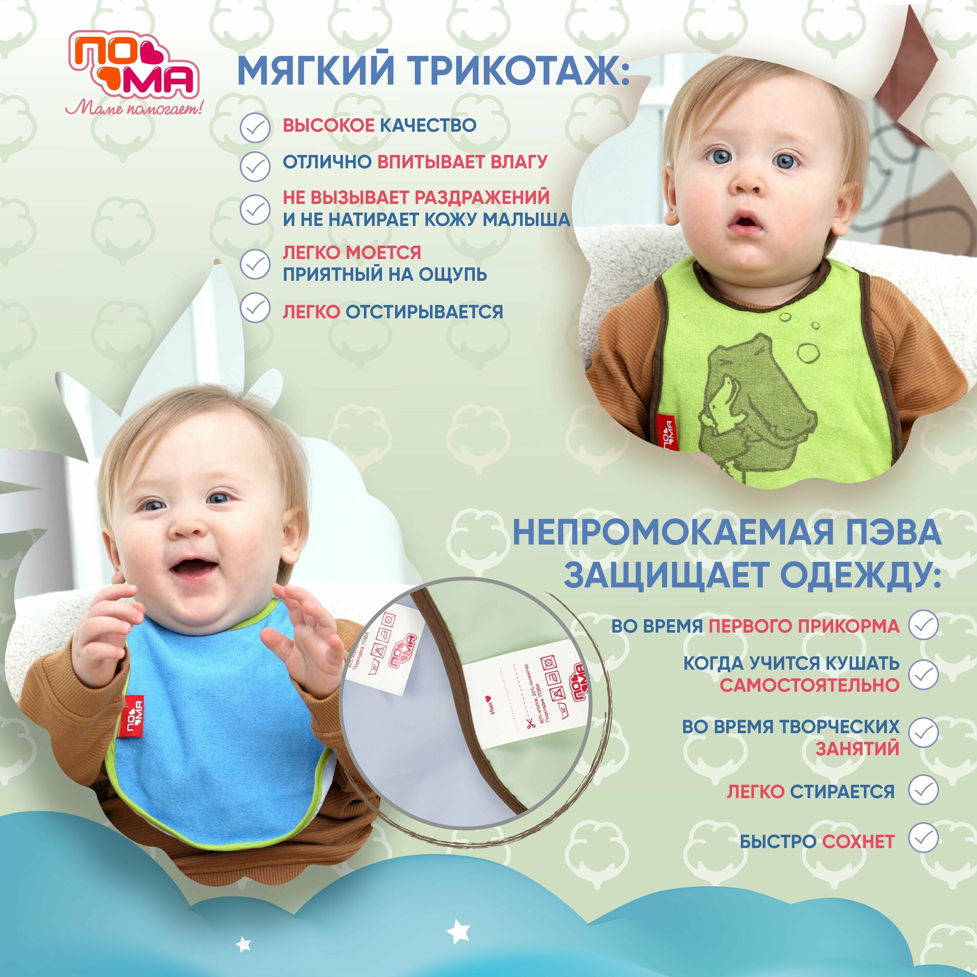 Набор слюнявчиков махровых для кормления новорожденных 1 шт 4 мес+ интересное: