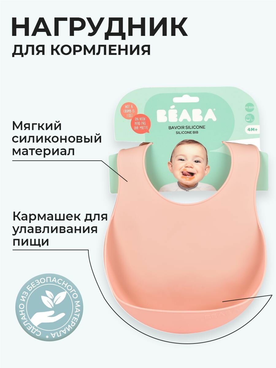 BEABA слюнявчик для кормления, нагрудник силиконовый детский, непромокаемый, мягкий многоразовый слюнявчик для ребенка