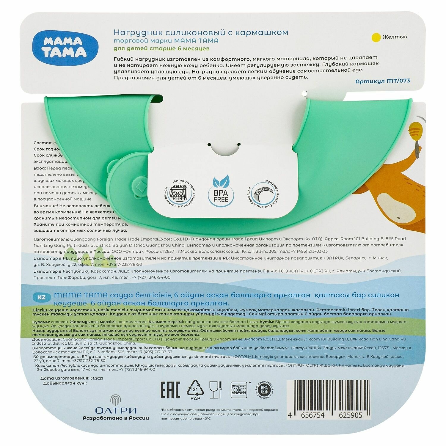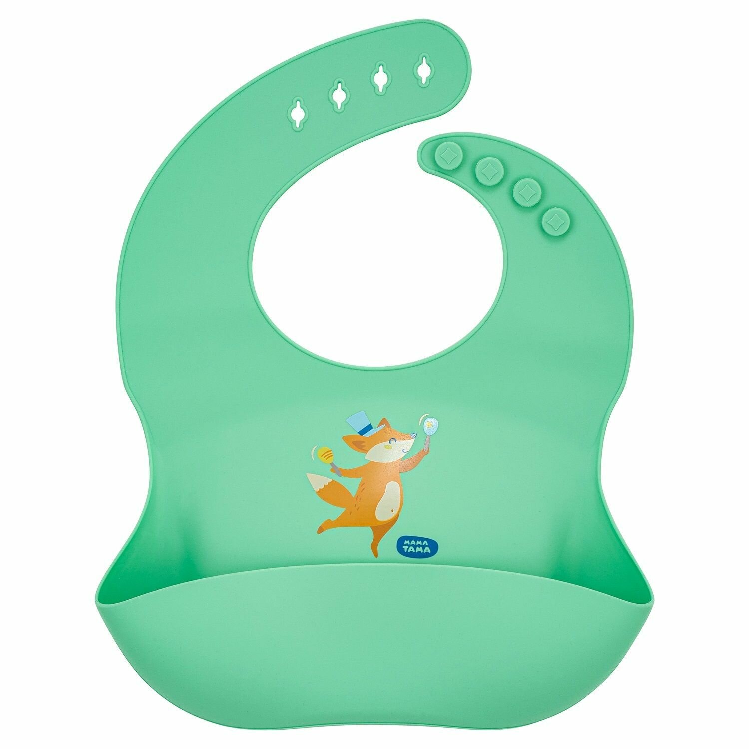 Купить Нагрудник силиконовый для кормления зеленый 6+ мама тама