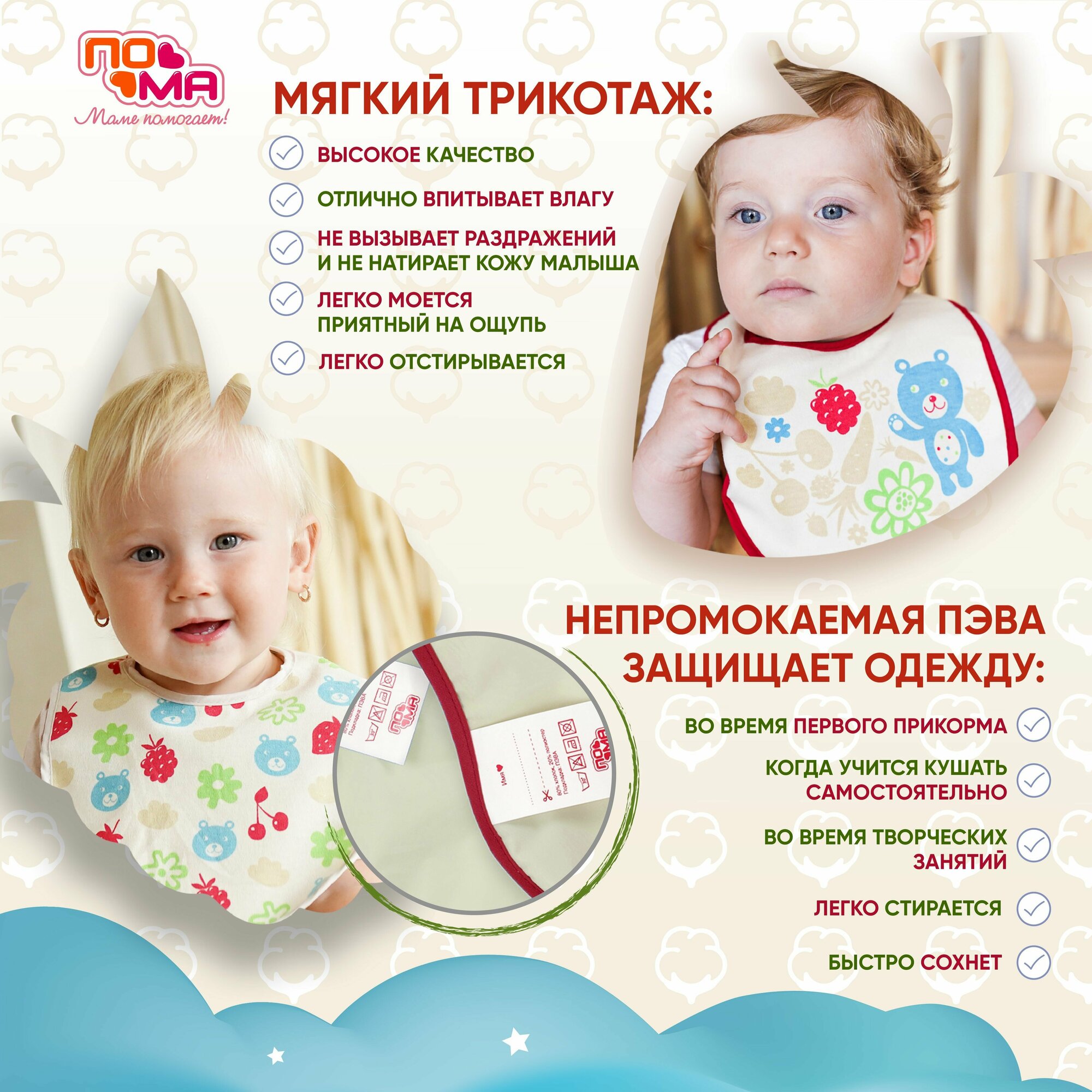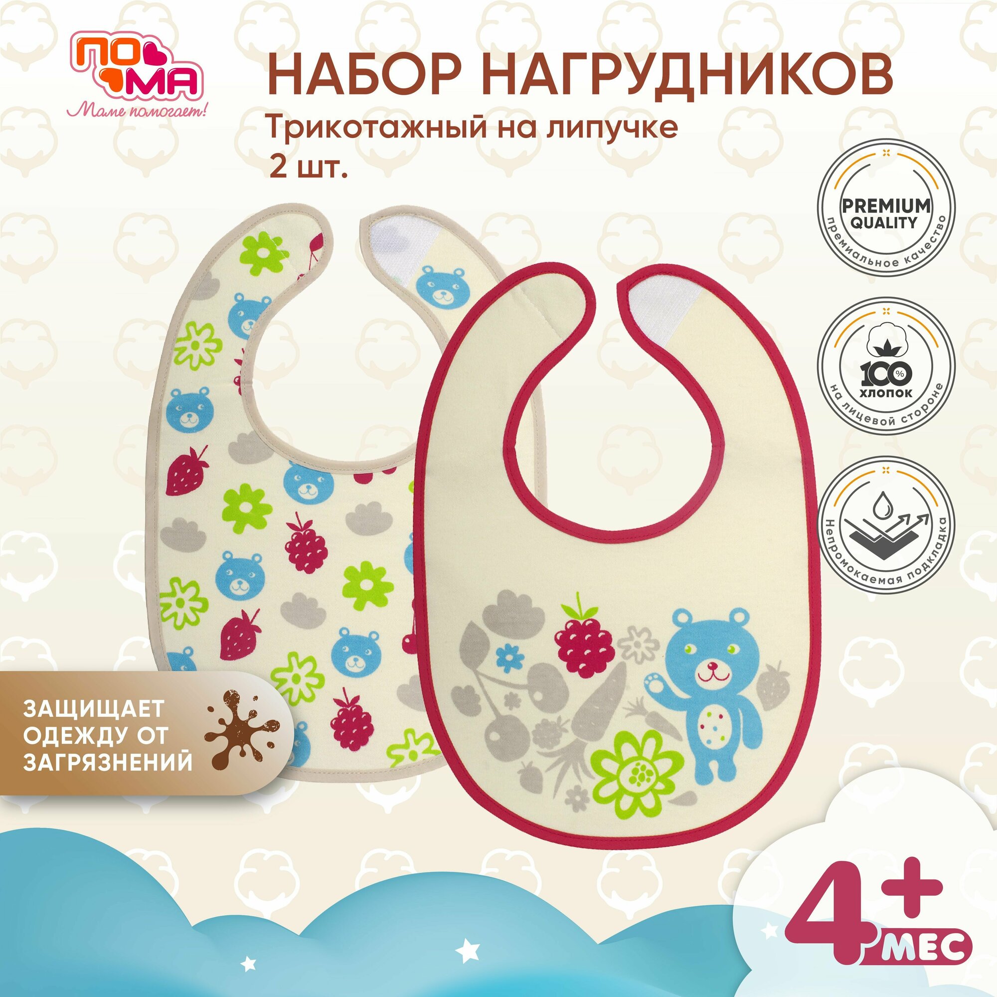 Набор слюнявчиков трикотажных для кормления новорожденных 1 шт 4 мес+ интересное: