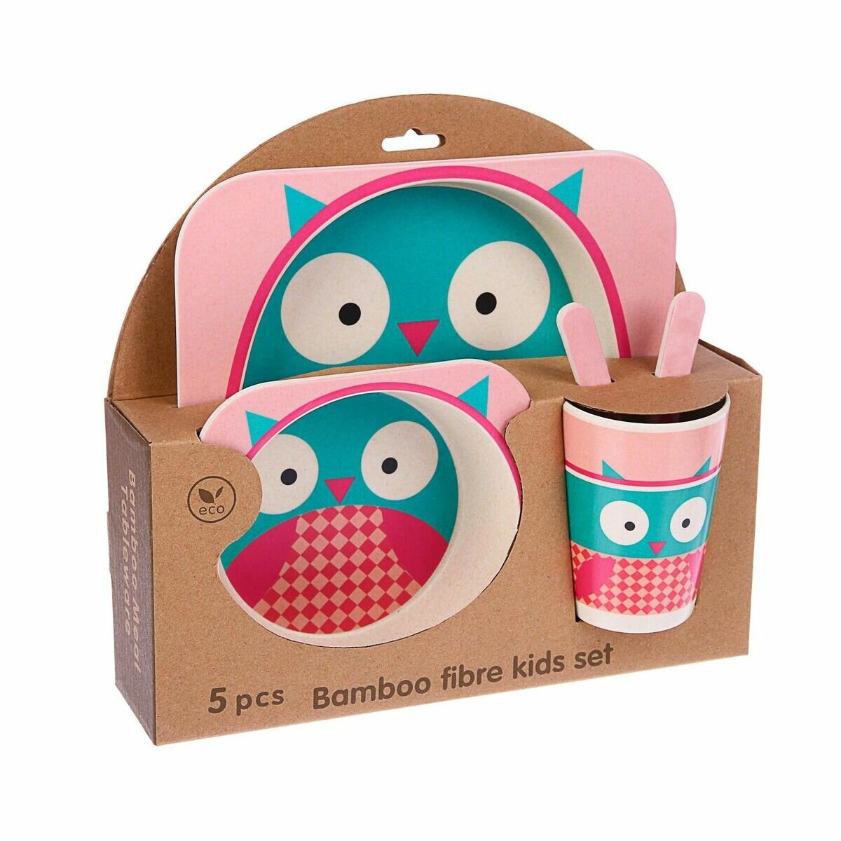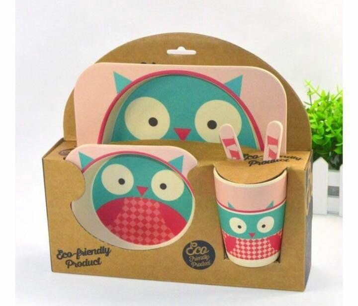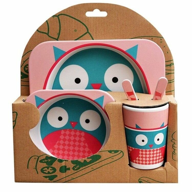 Набор бамбуковой посуды Yookidoo из бамбука с круглой тарелкой/Сова интересное: