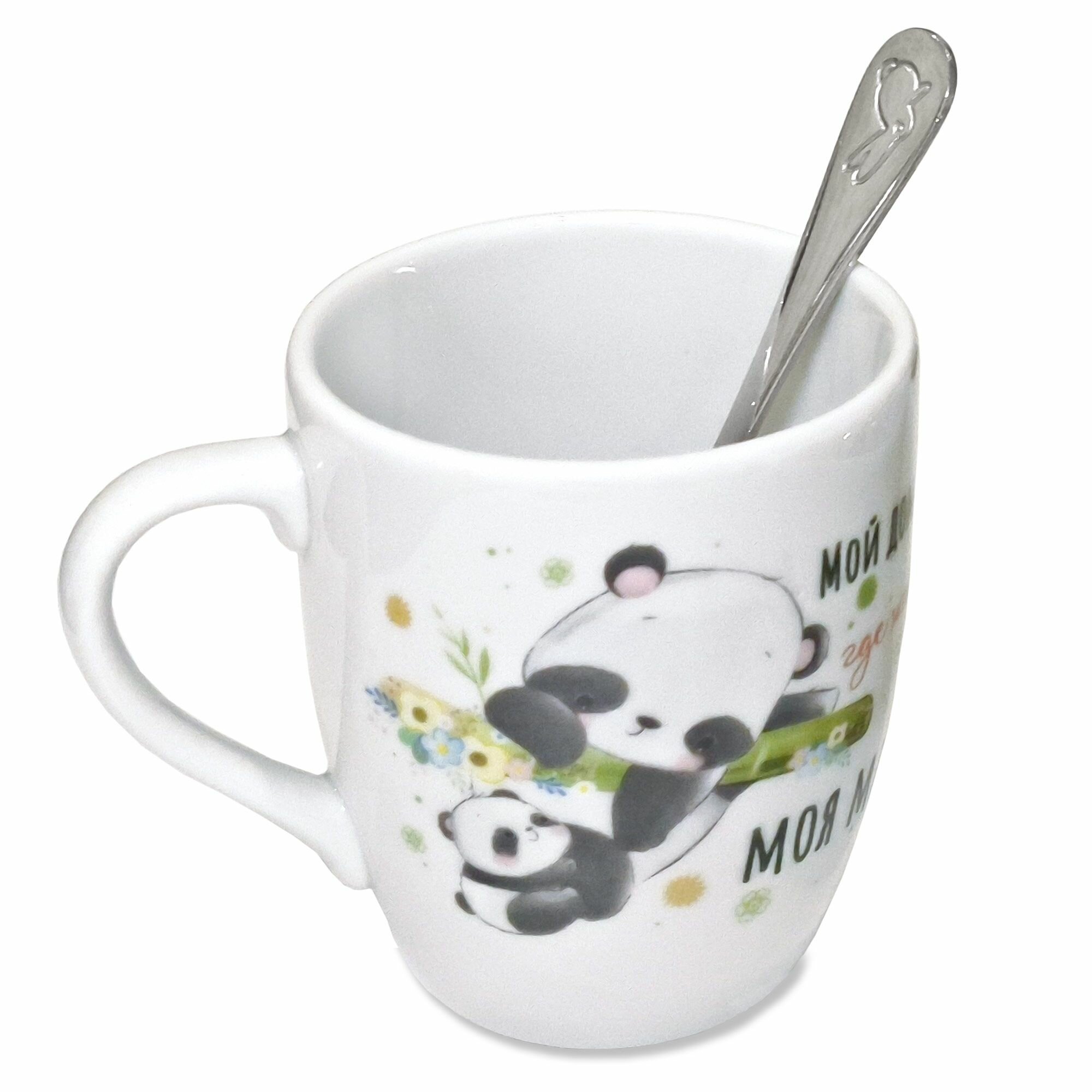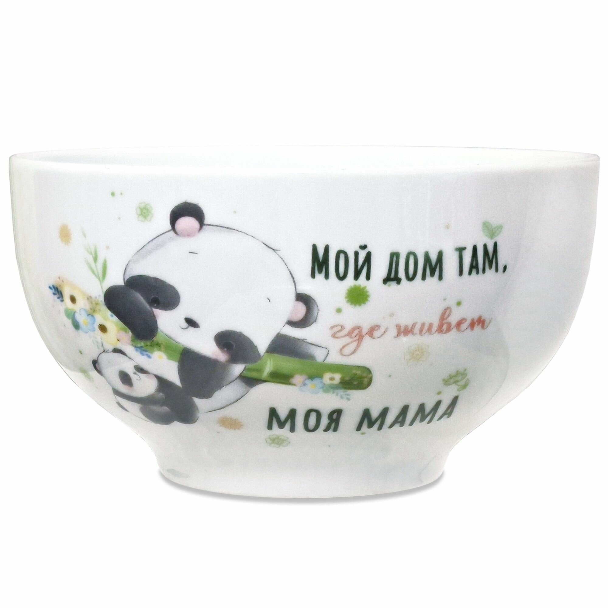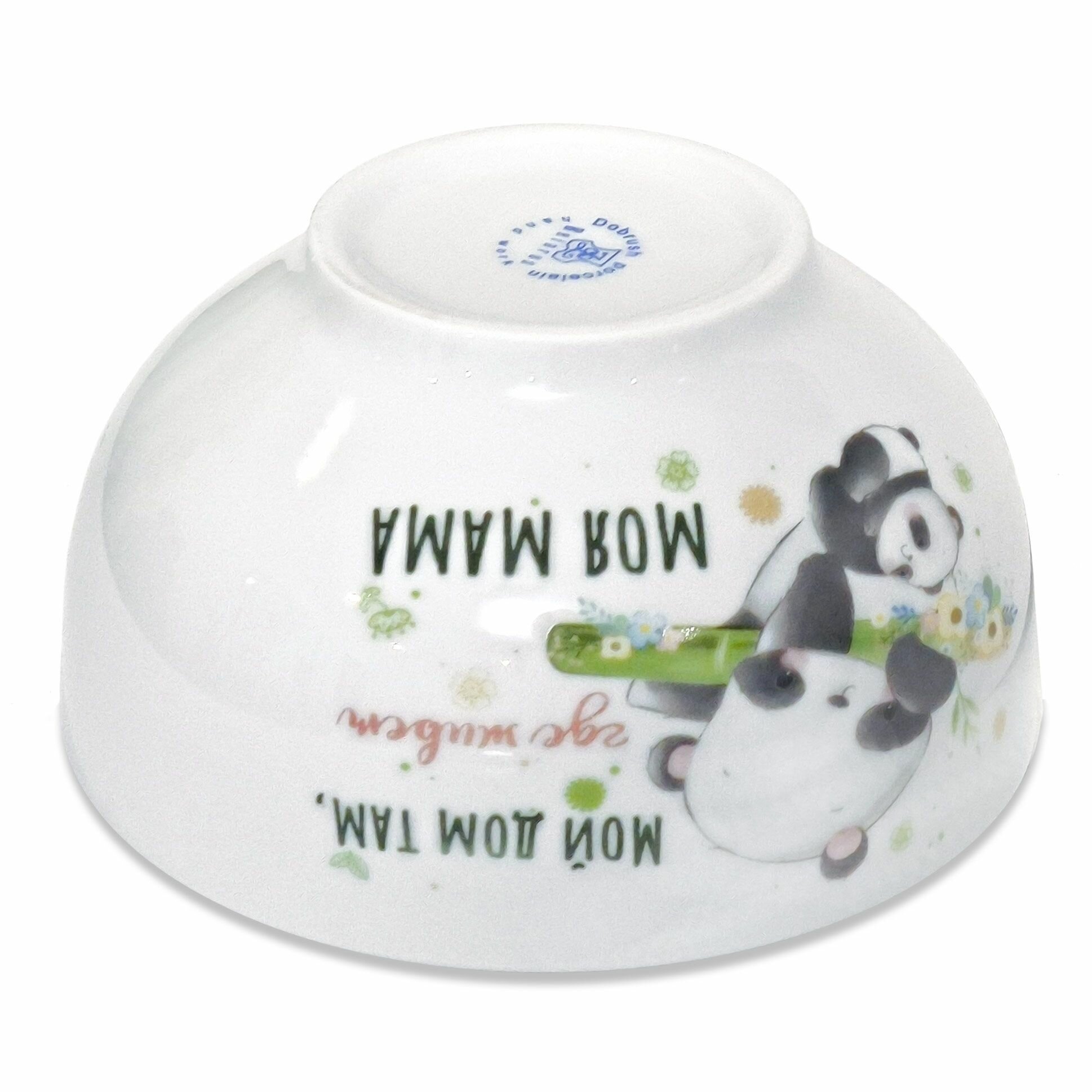 Купить Набор посуды для детей "Мамина любовь" (Панда) (пиала 650 мл, тарелка 200 мм, кружка 300 мл), фарфор + детские столовые приборы из нержавеющей стали