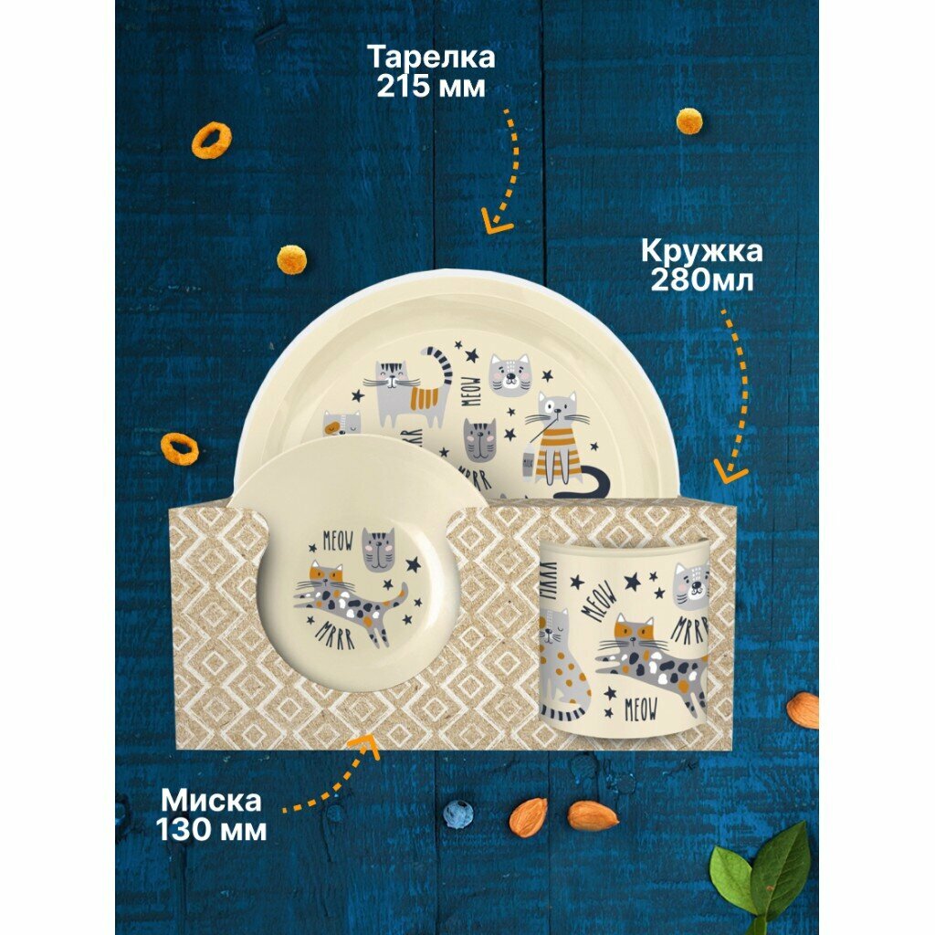 Набор посуды детский полипропилен, 3 шт, тарелка D215мм, миска D130мм, кружка 280мл, светло-бежевый, 221152125/01 интересное: