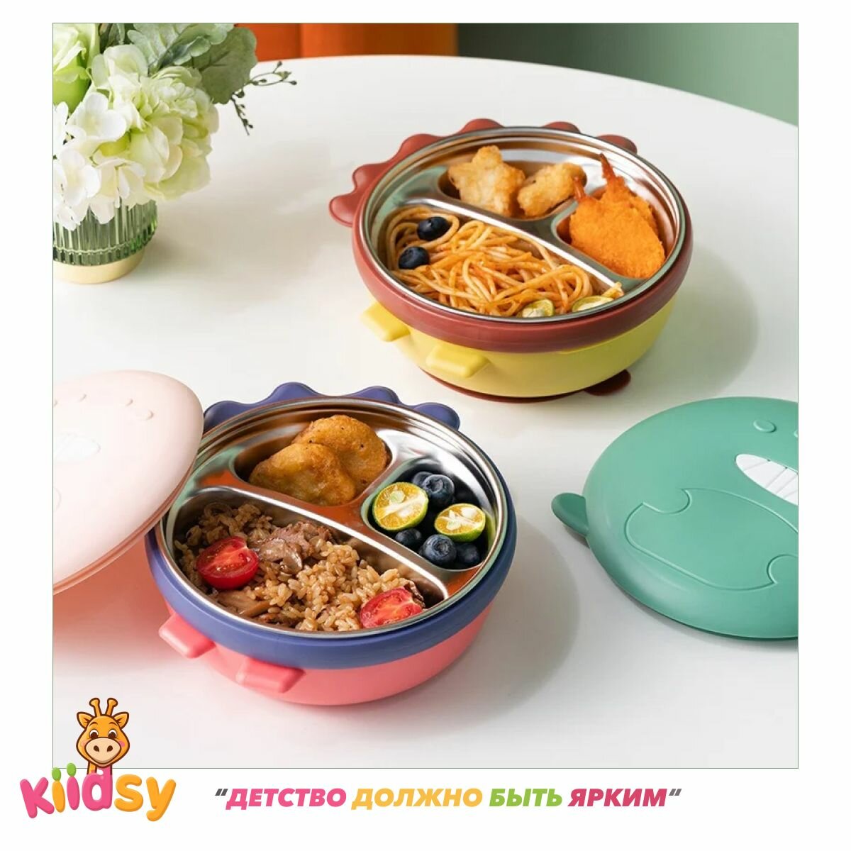 Термотарелка секционная для кормления малышей, с крышкой, Kiidsy интересное: