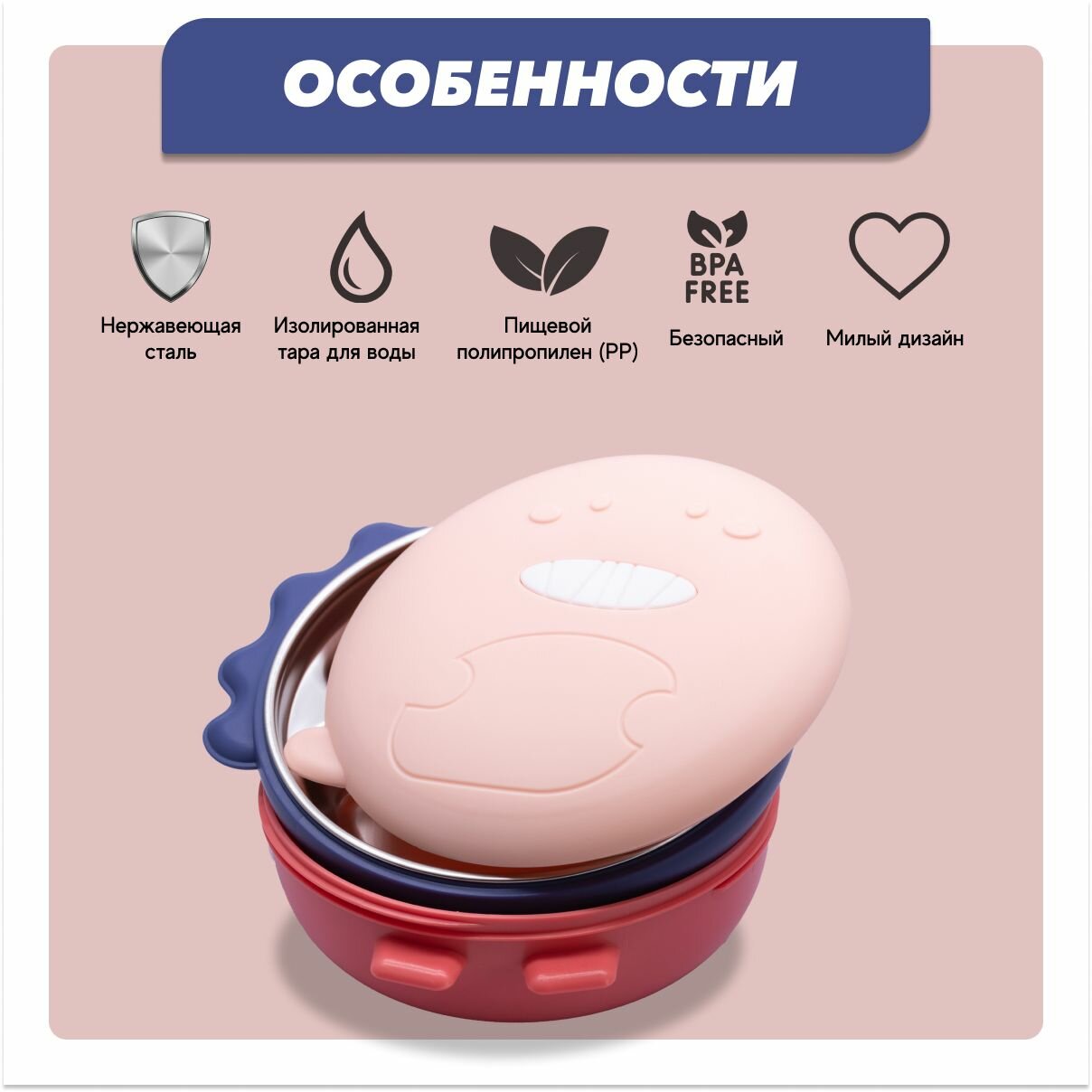 | Особенности | можно мыть в посудомоечной машине / можно стерилизовать / на присоске / нескользящее покрытие / тарелка с секциями |