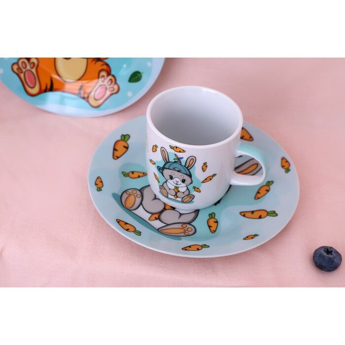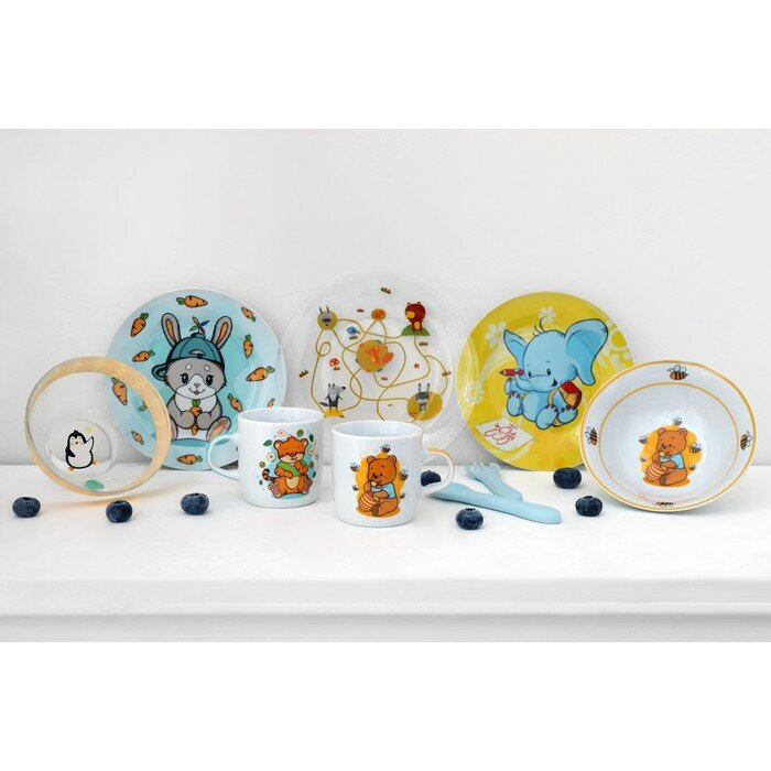 Набор детской посуды из керамики «Милый зайка», 3 предмета: кружка 230 мл, миска 400 мл, тарелка d=18 см, цвет белый интересное: