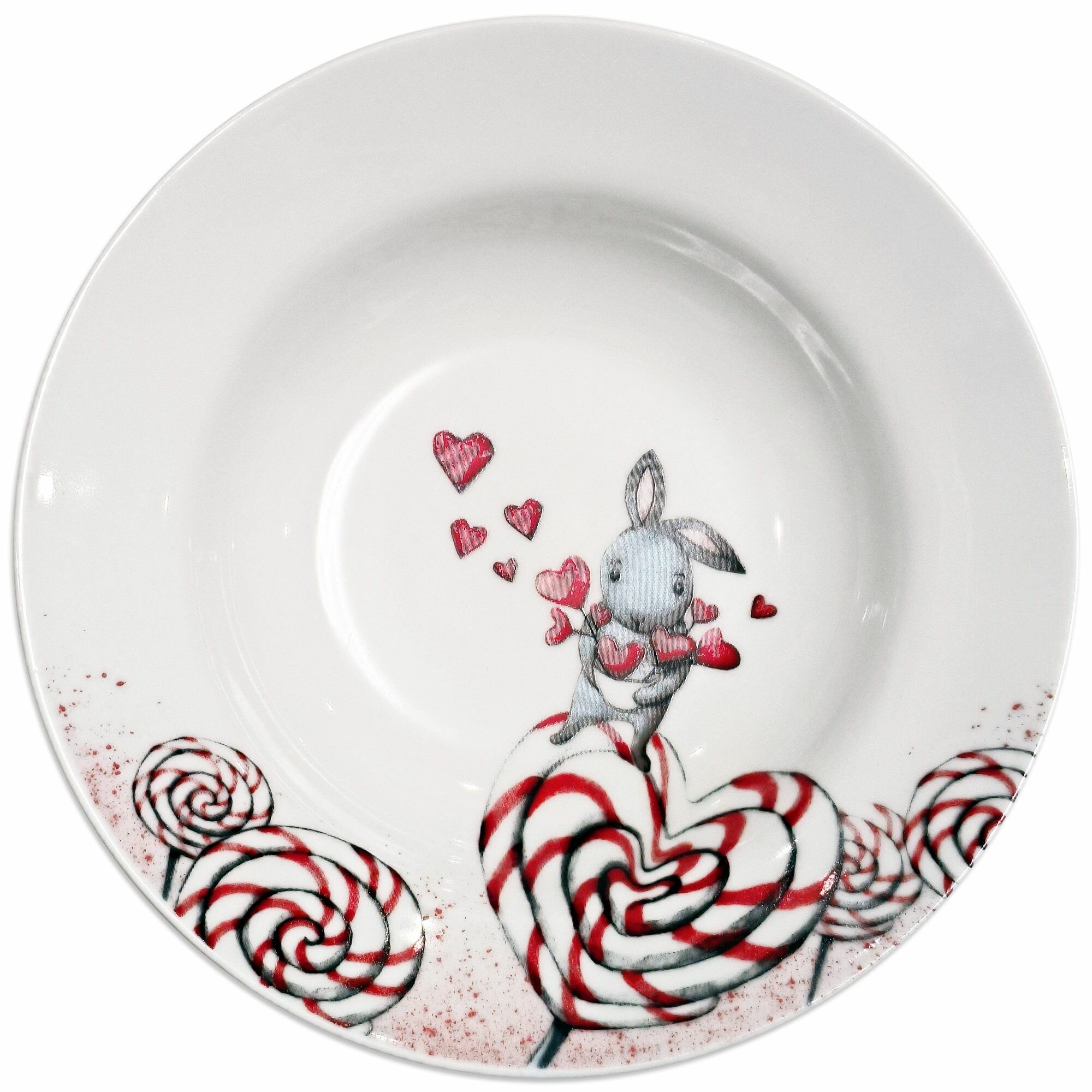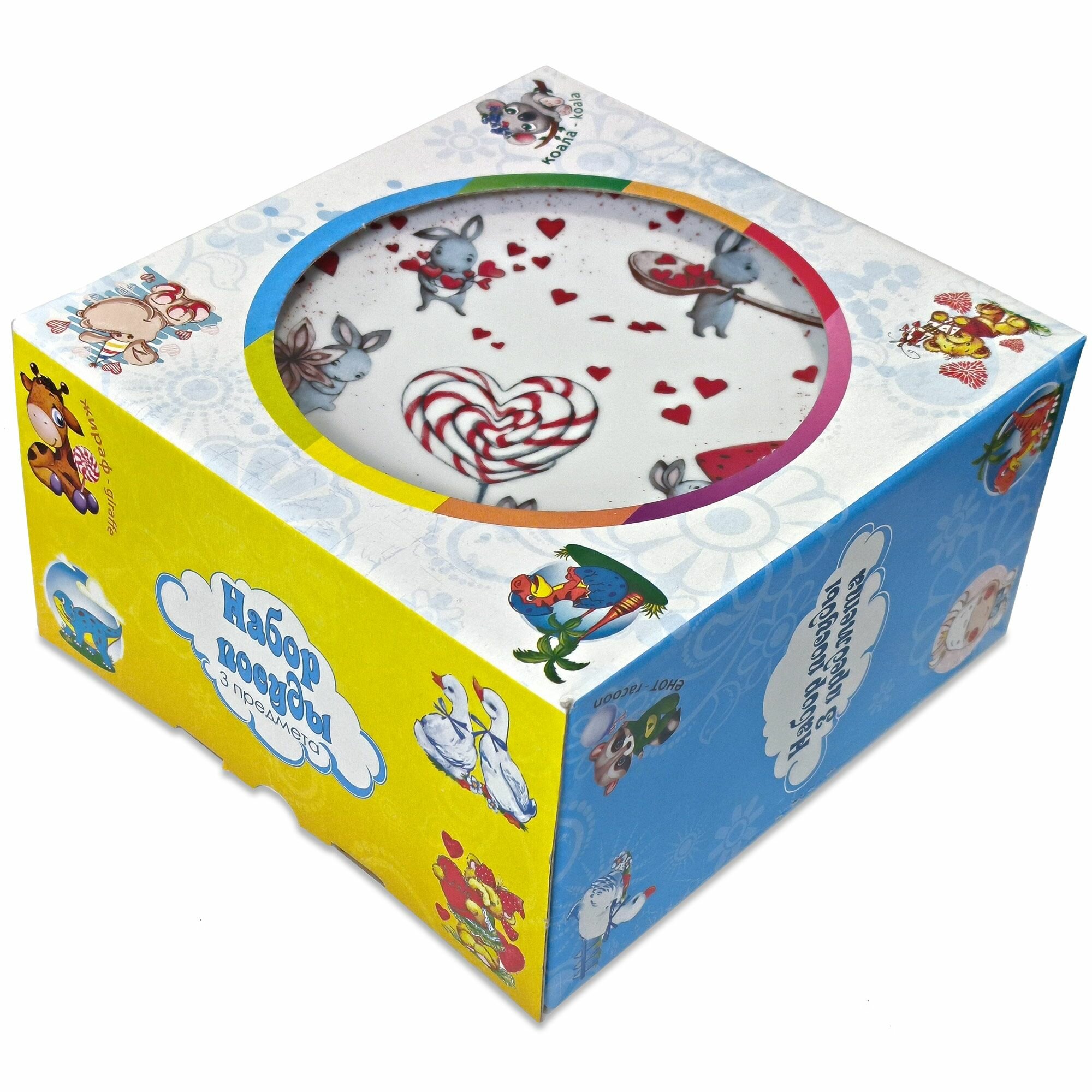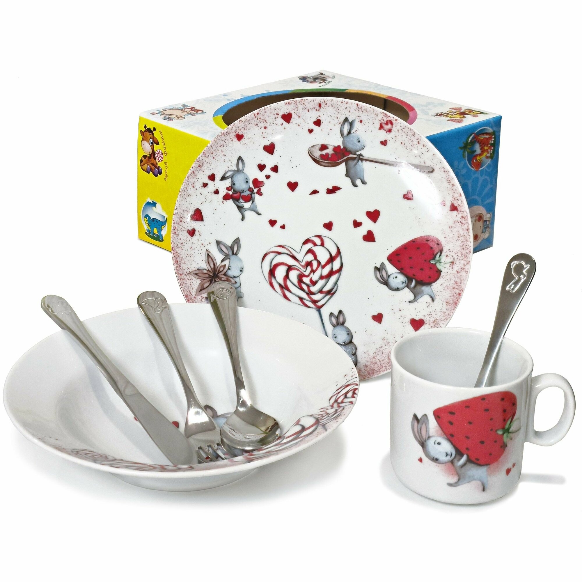 Купить Набор посуды для детей "Lollipop" (глубокая тарелка 250 мл, тарелка 200 мм, кружка 200 мл), фарфор + детские столовые приборы из нержавеющей стали