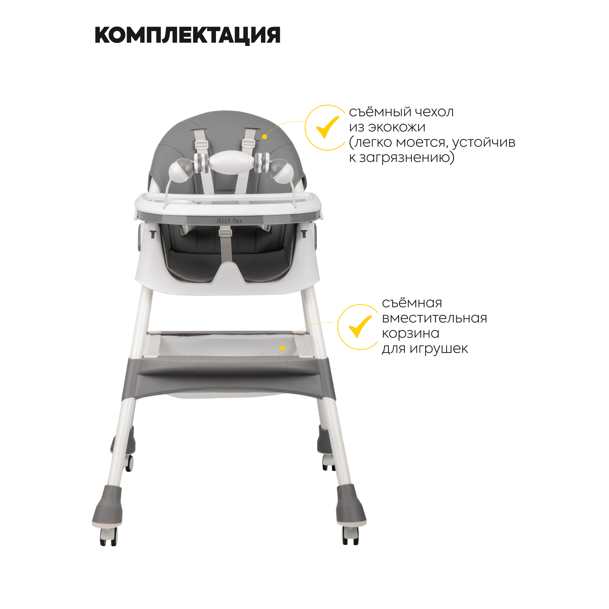 Стульчик для кормления ребенка Jovola Jelly Flex от 6 до 36 месяцев, темно-серый интересное: