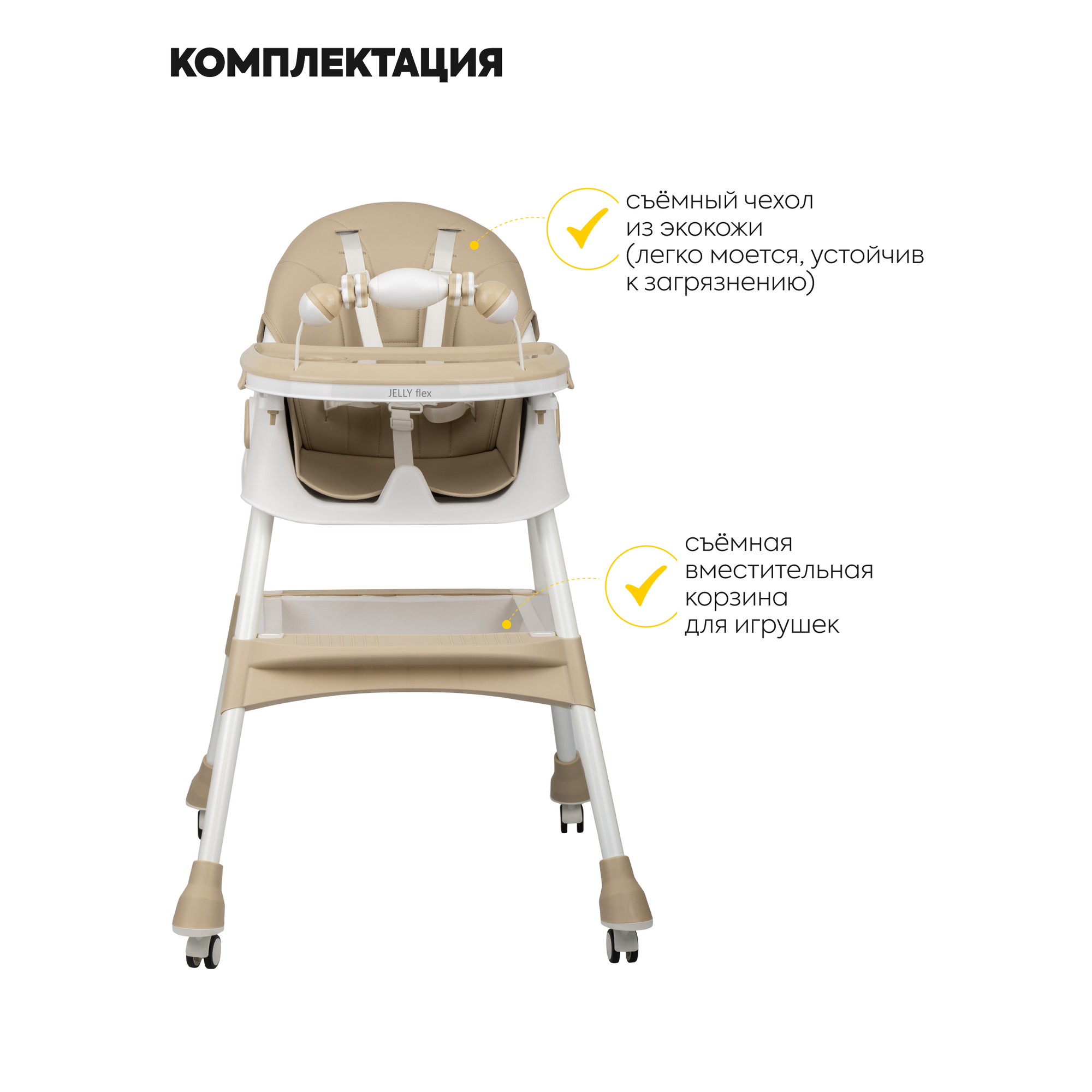 Стульчик для кормления ребенка Jovola Jelly Flex от 6 до 36 месяцев, бежевый интересное:
