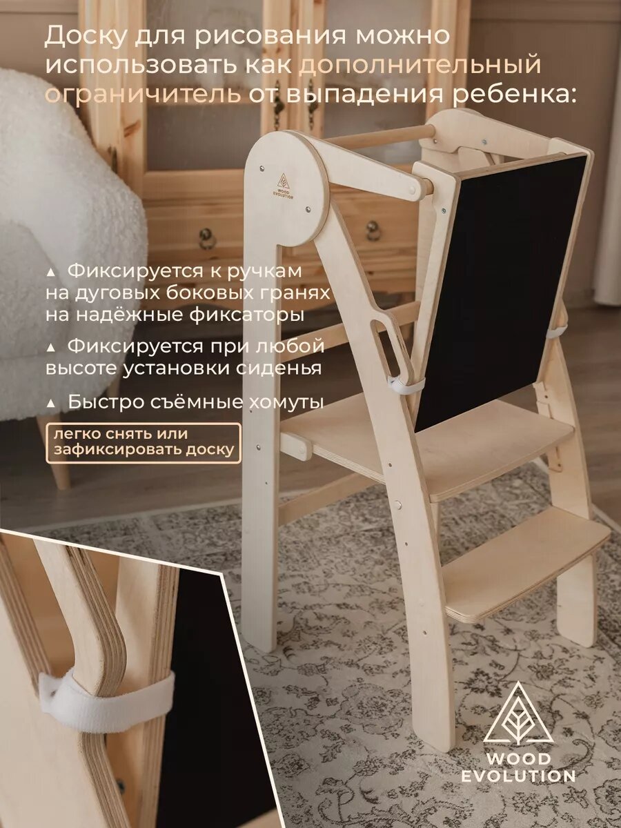 Купить Башня помощника складная Монтессори с доской для рисования, серия "SUNRISE" от Woodevolution, лакированные