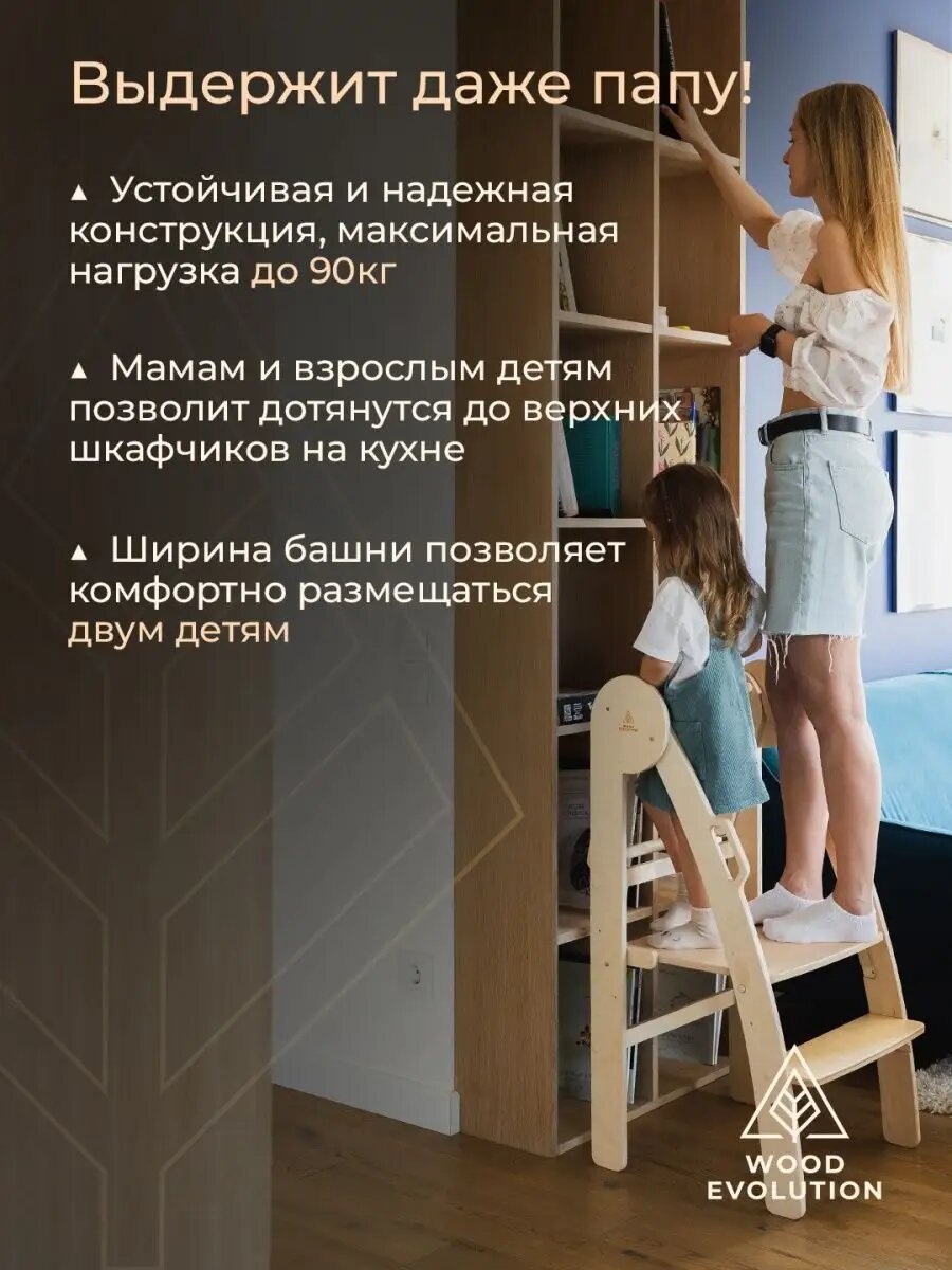 СохранитьБашня помощника складная Монтессори с доской для рисования, серия "SUNRISE" от Woodevolution, без покрытия интересное:
