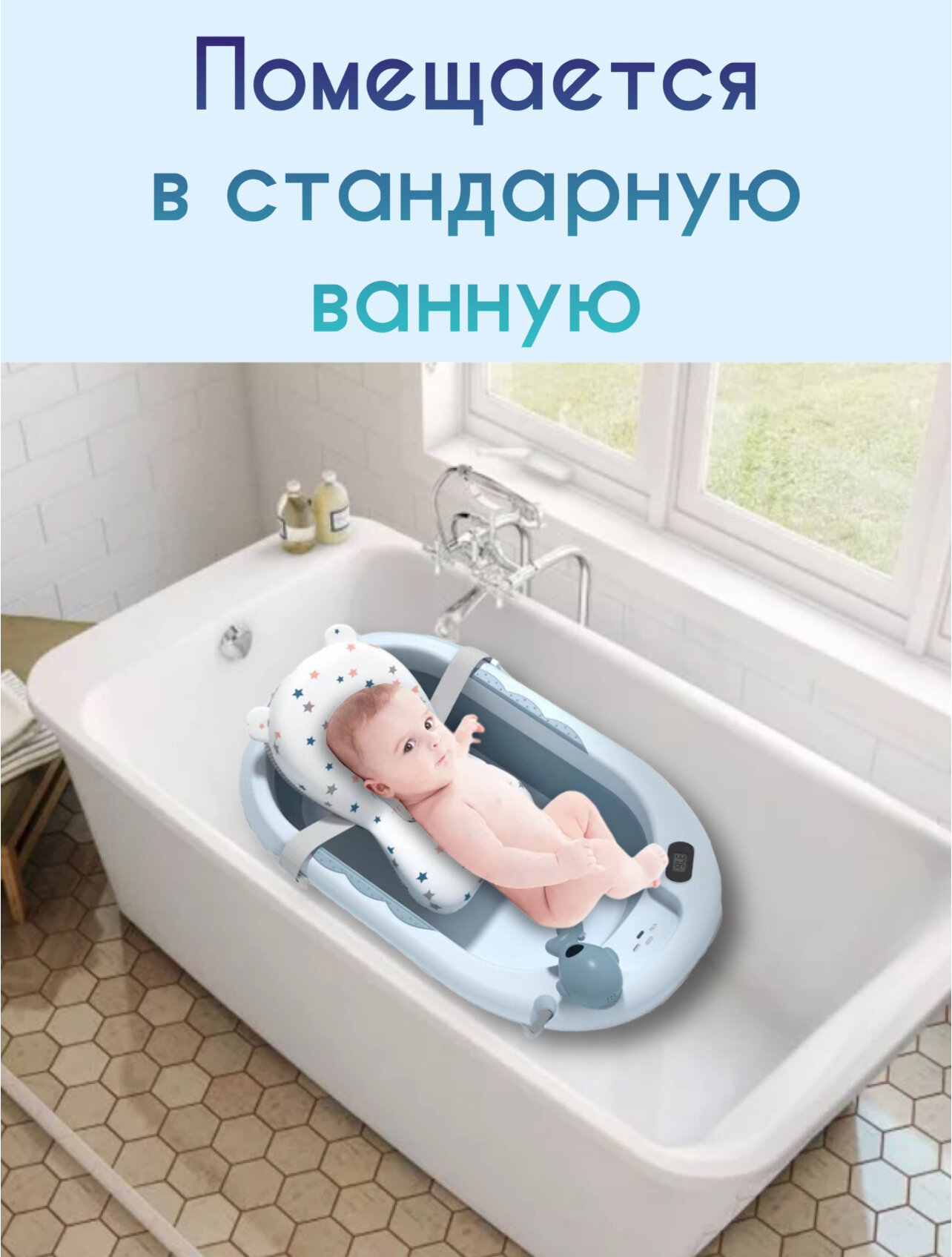 Складная ванночка для купания младенцев с термометром, для новорожденных и детей до 18 месяцев, с шапочкой и плавающим ковриком