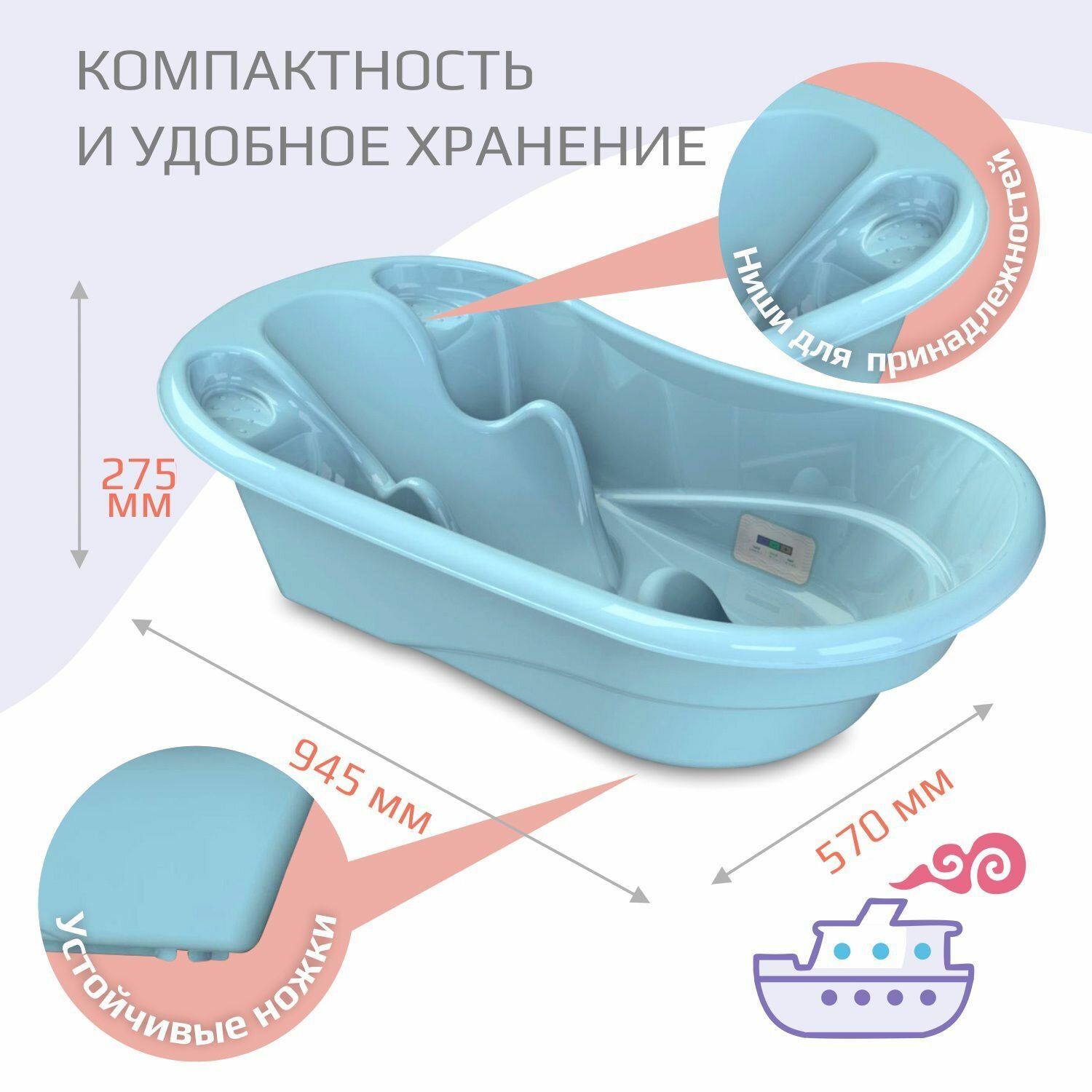 Ванночка для купания новорожденных Kidwick Лайнер, с термометром, голубая интересное: