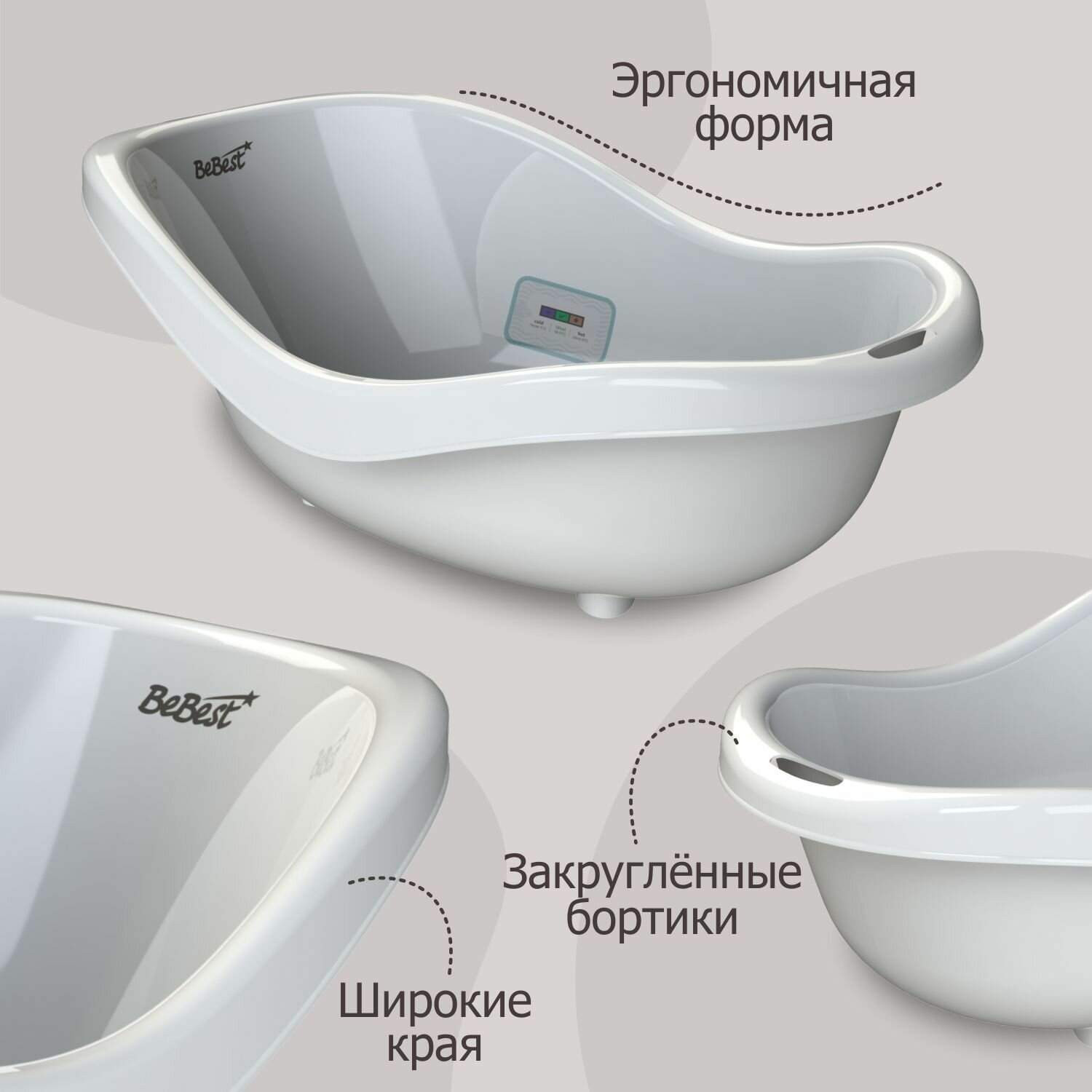 Ванночка для купания новорожденных BeBest Respect с термометром, белый интересное: