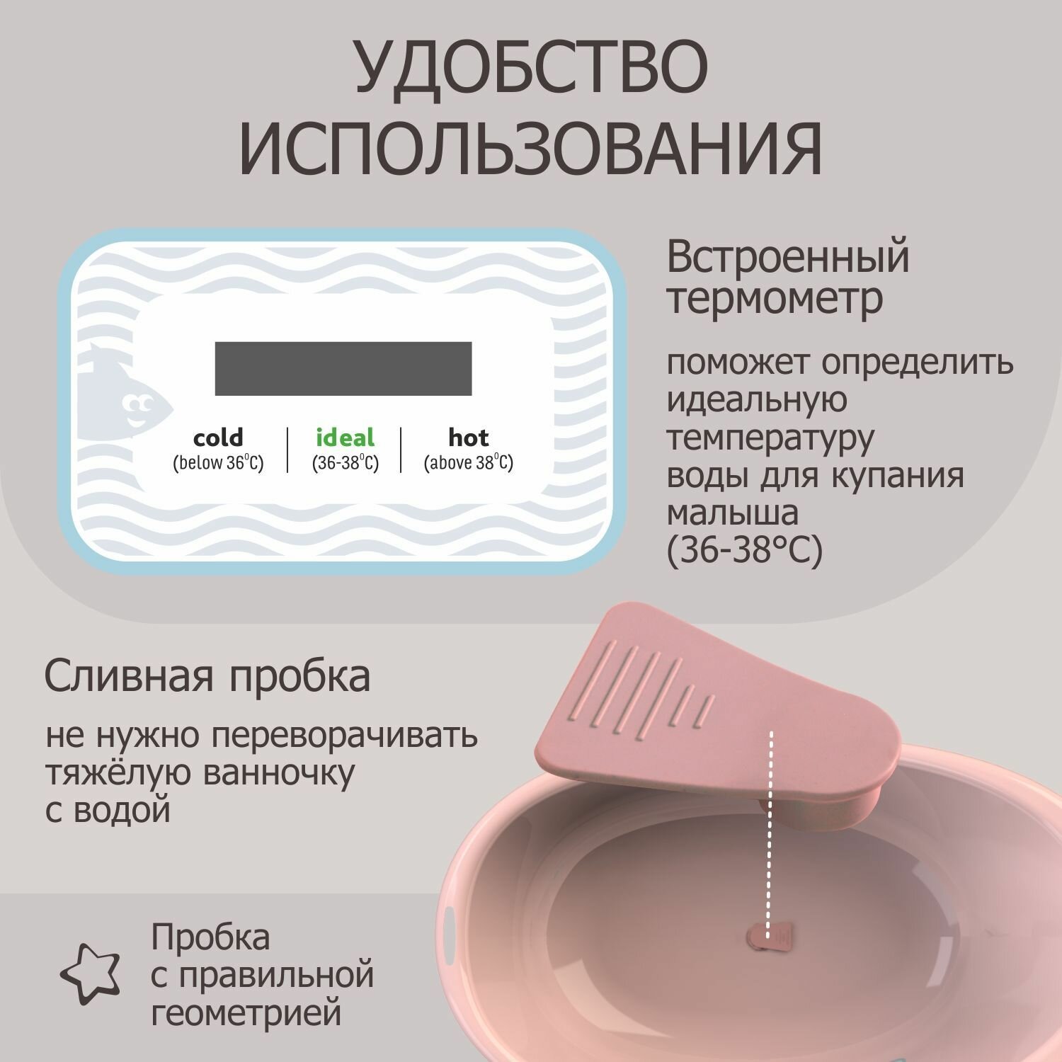 Ванночка для купания новорожденных BeBest Respect с термометром, розовый интересное: