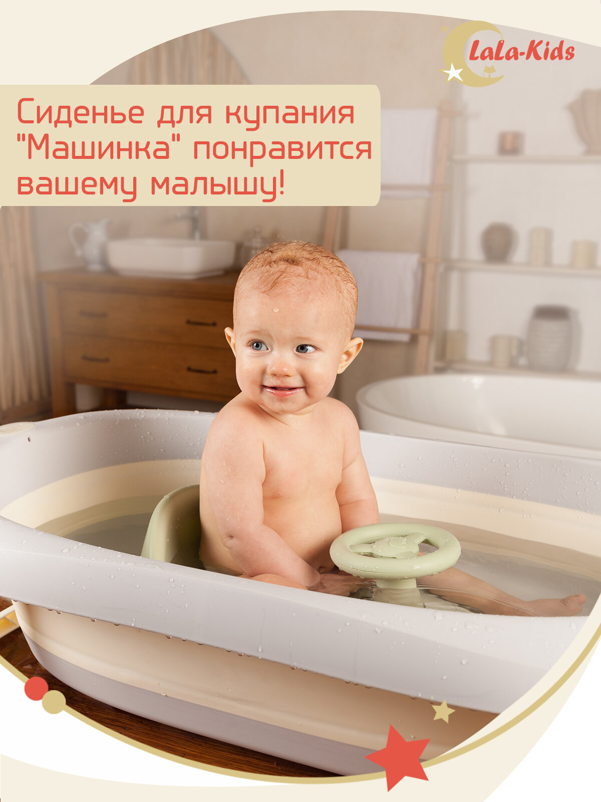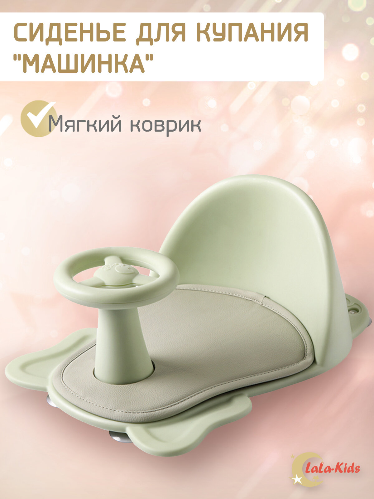 Cиденье LaLa-Kids для купания с мягким ковриком Машинка зеленый интересное: