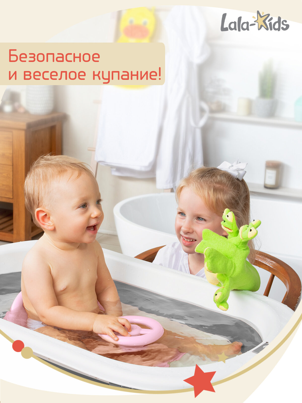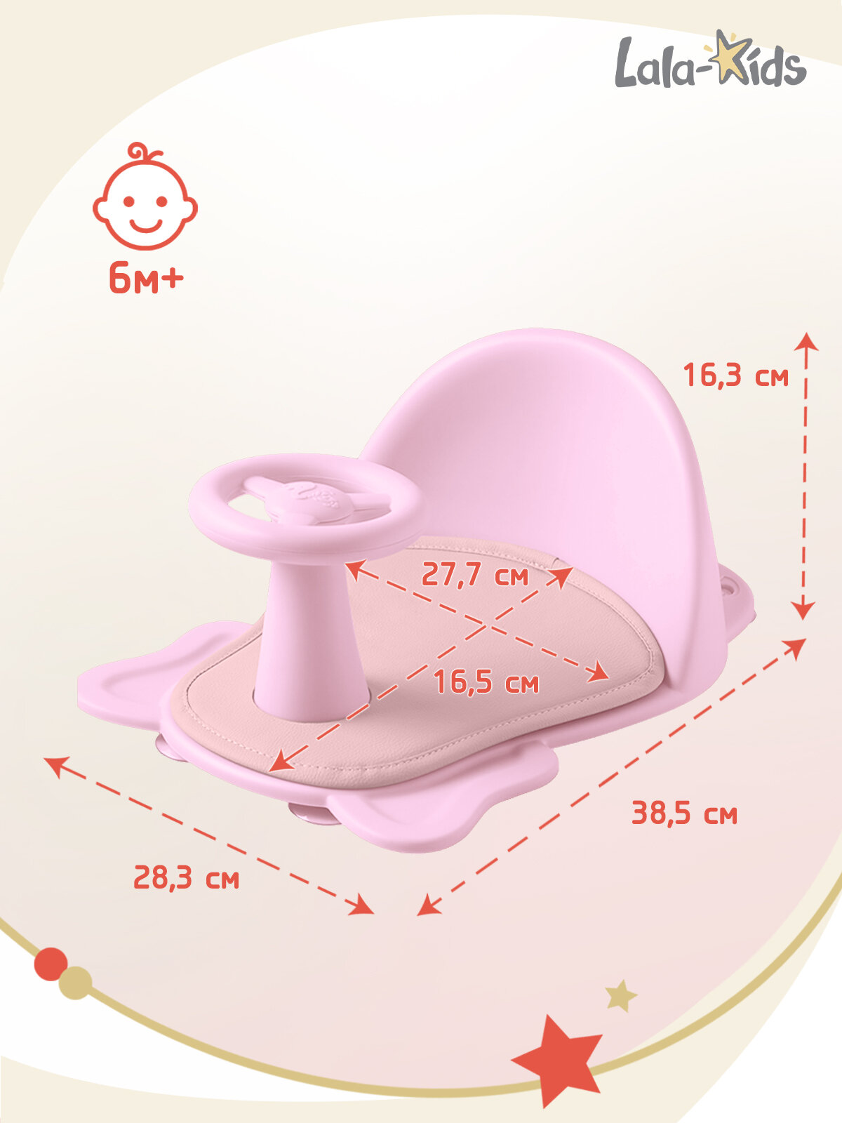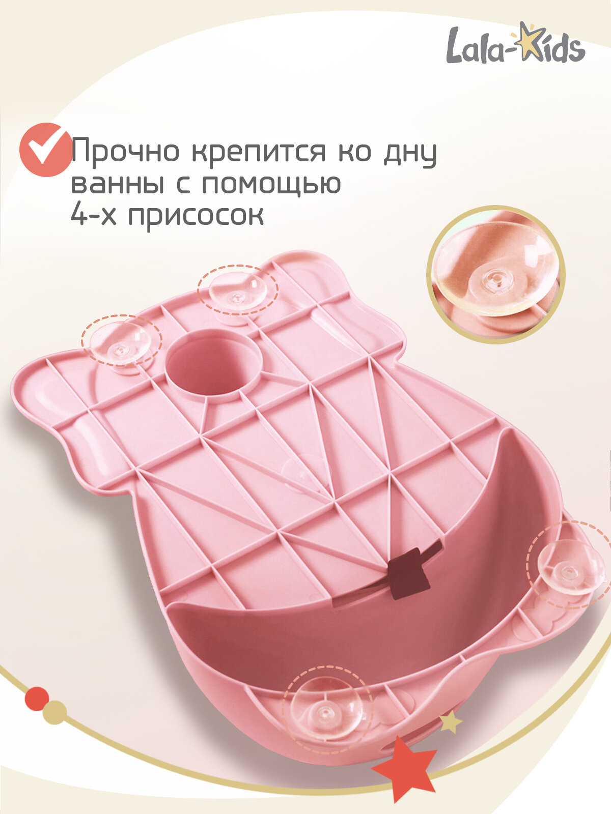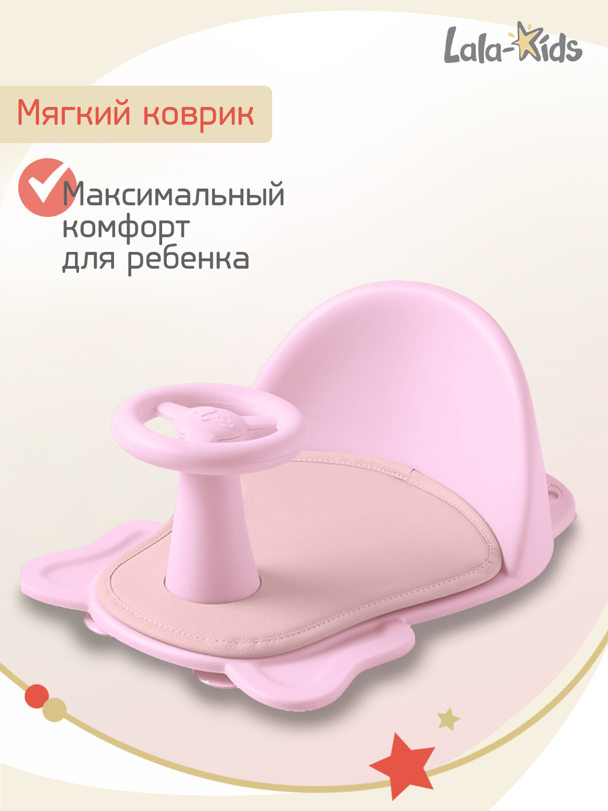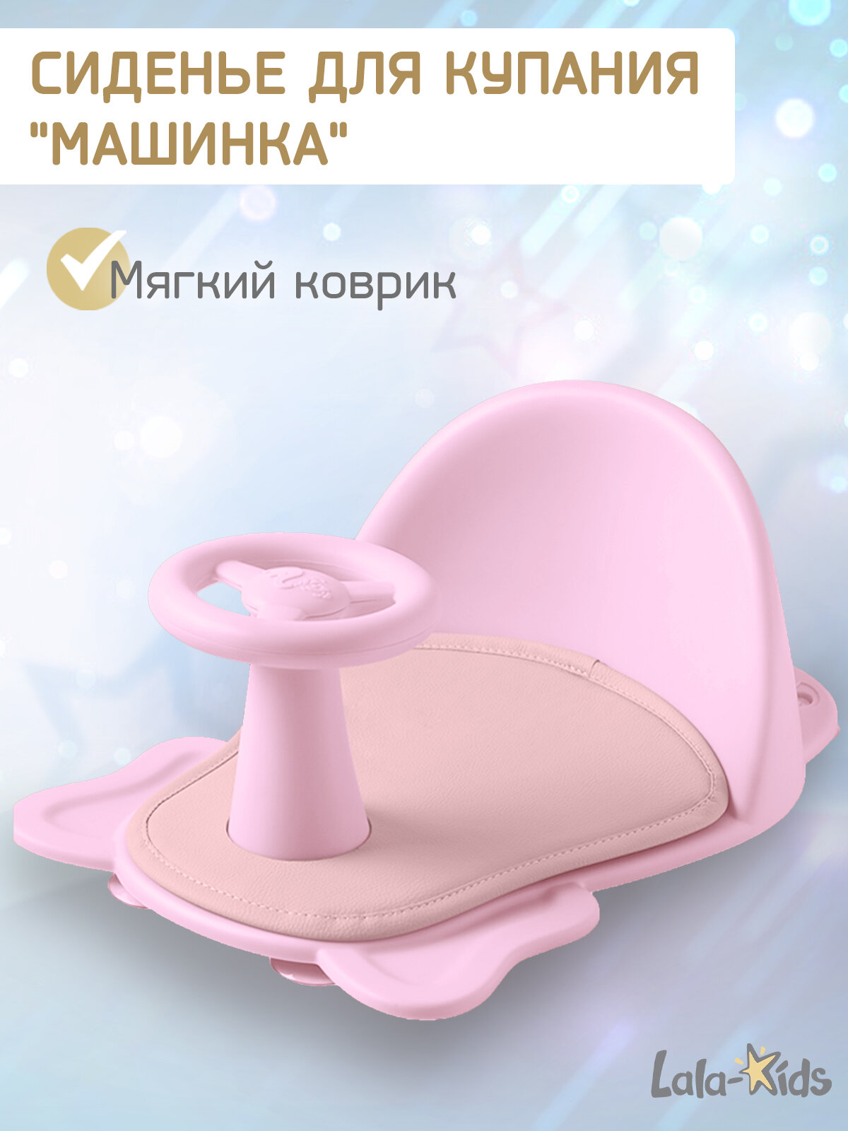 Cиденье LaLa-Kids для купания с мягким ковриком Машинка, розовый интересное: