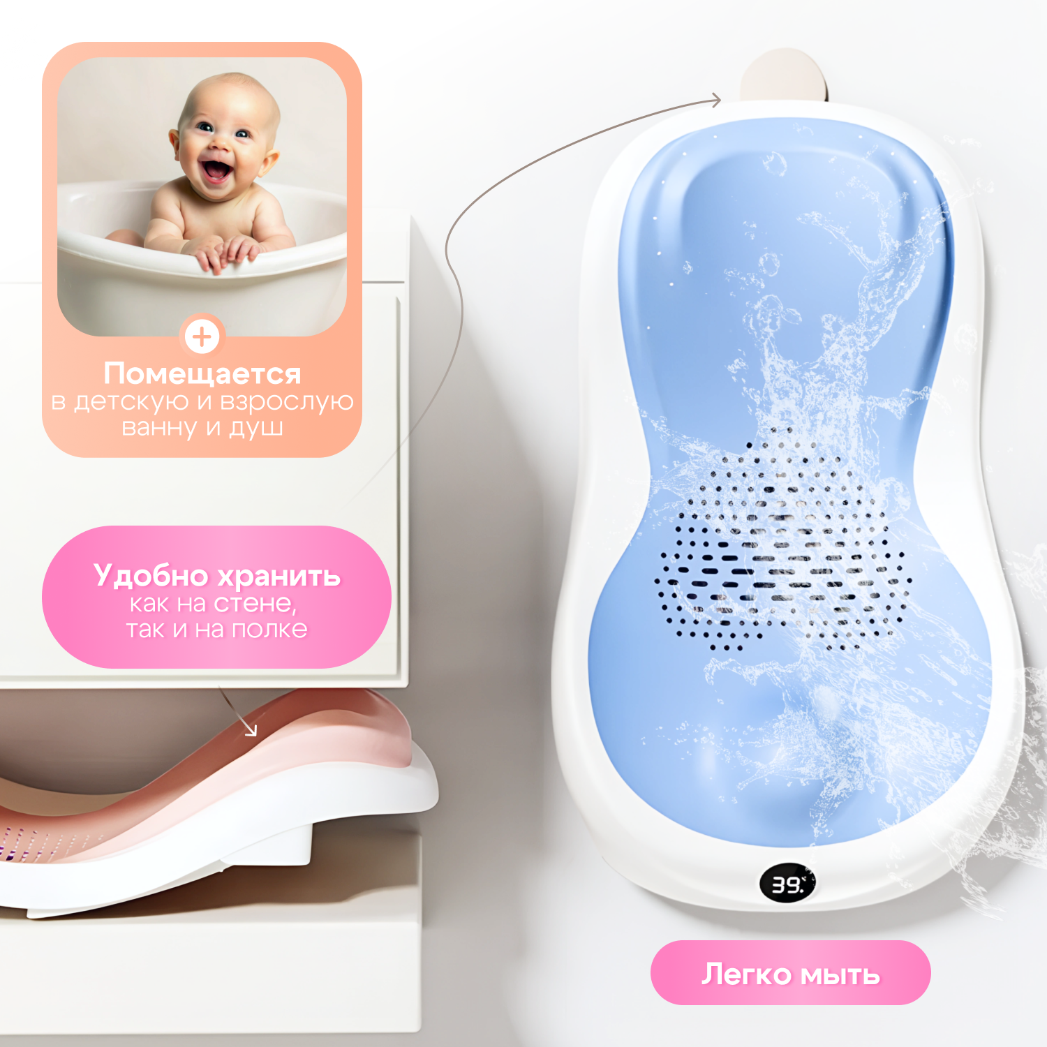 Лежачок-горка для купания Babycare с датчиком температуры,розовый цвет интересное: