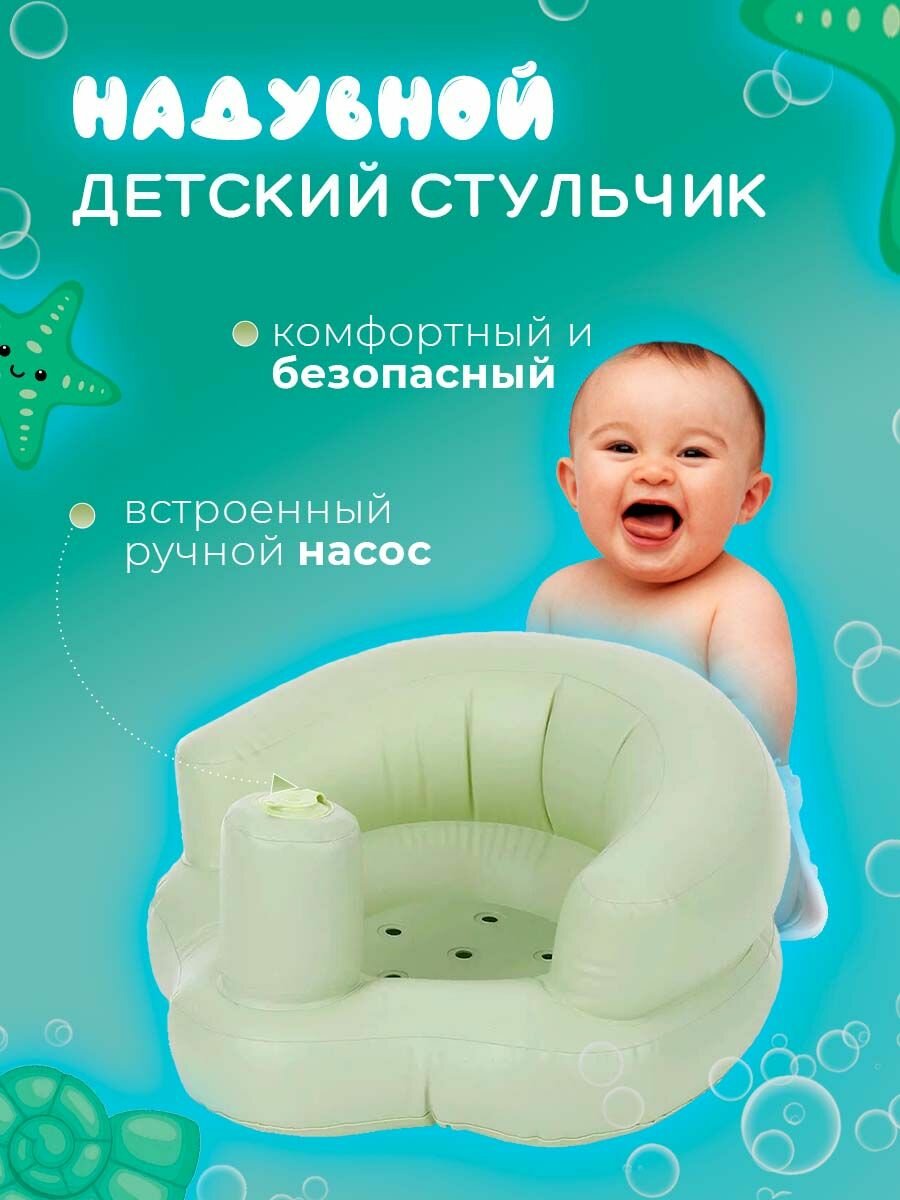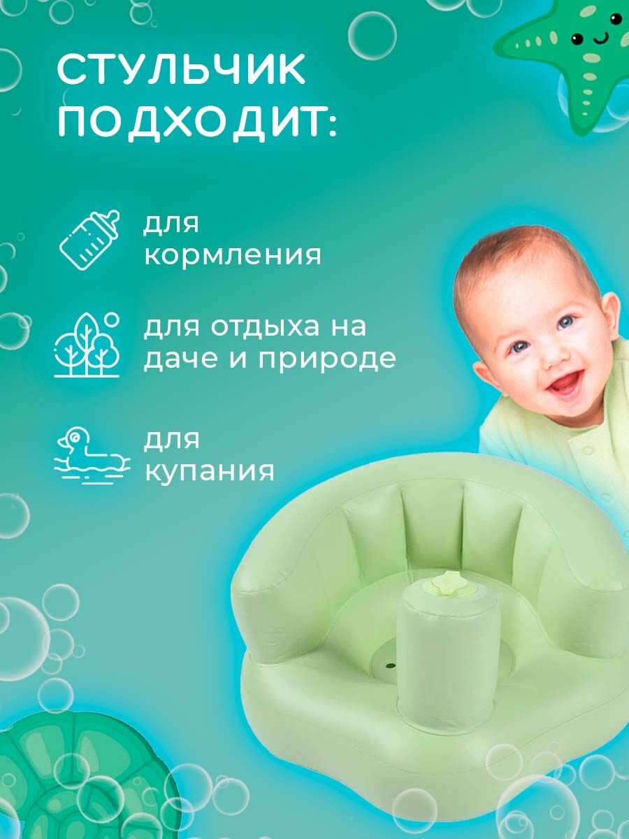 Стульчик для купания детский, сиденье для ванной, на природе, надувной, светло-зеленый интересное: